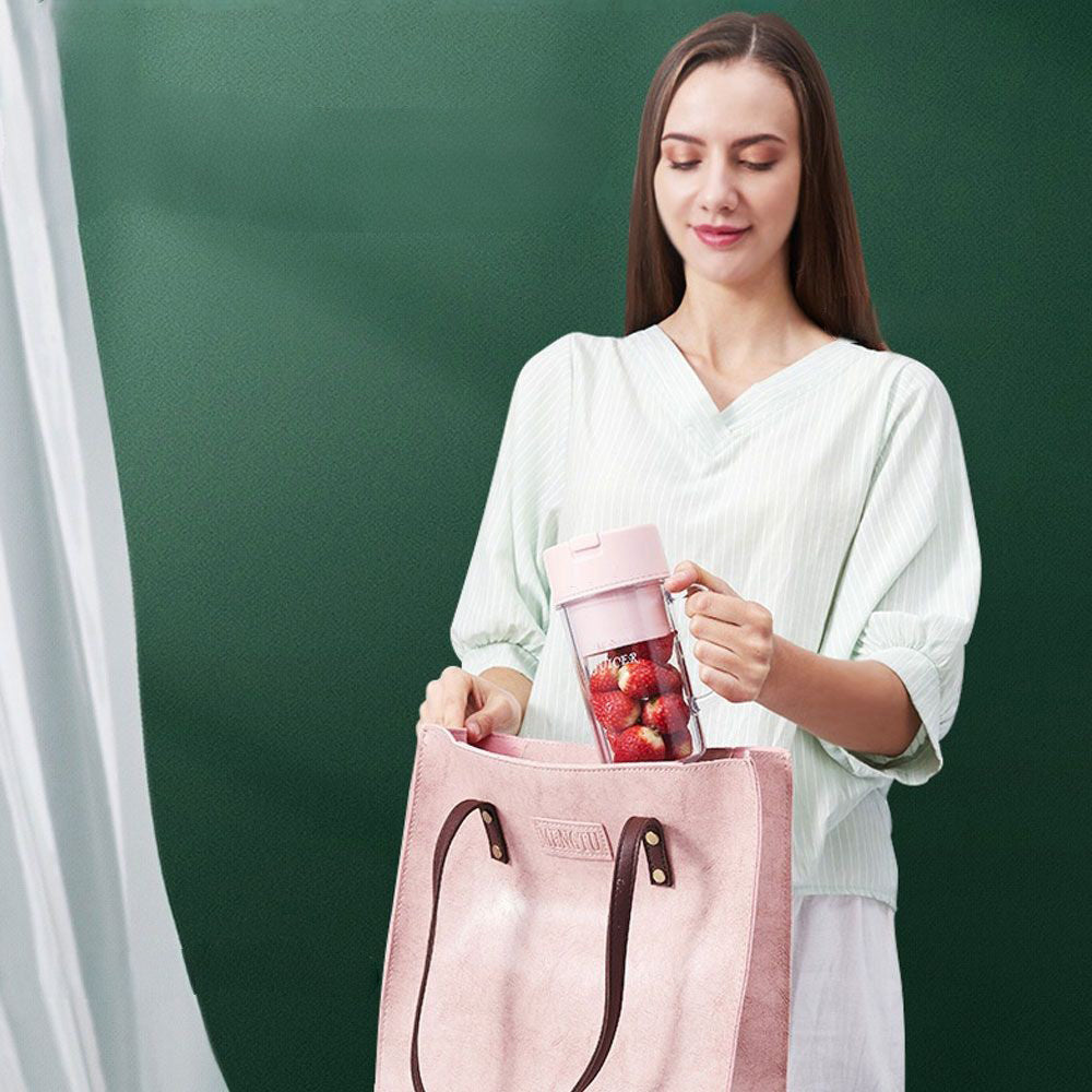 - The 10-Blades Portable Electric Juicer Mug is available in green, pink, and blue, and features a 340ml capacity. Embrace the convenience and functionality of this mini juicer blender mug and elevate your juicing experience.