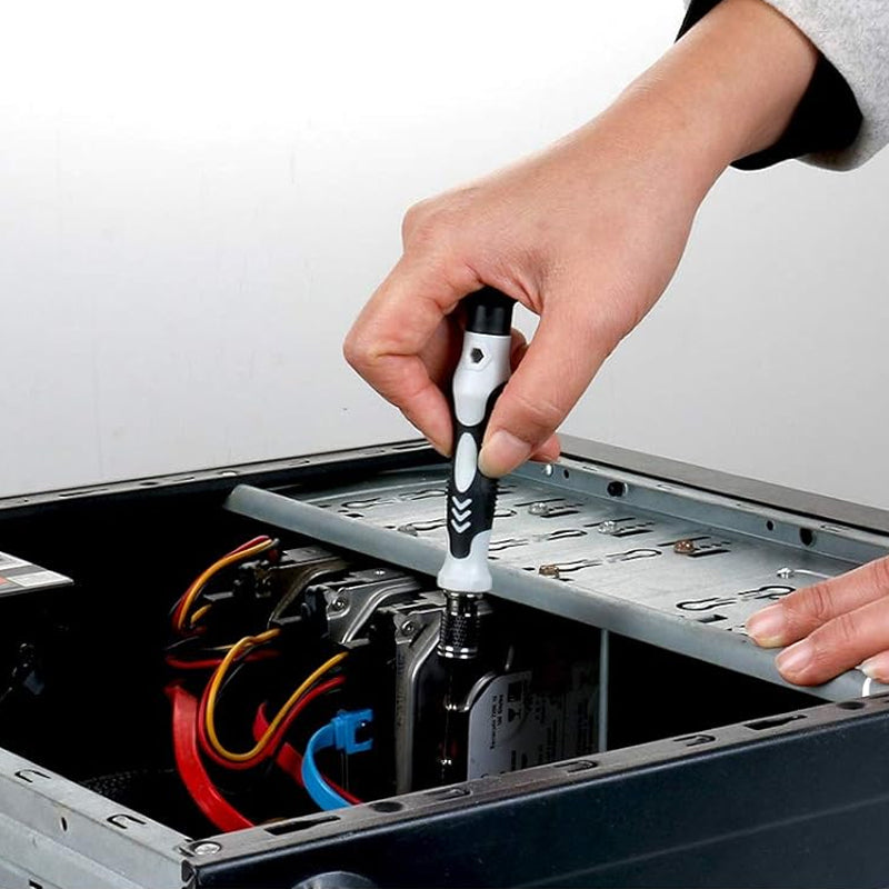 Enhance your repair abilities with our Screwdriver Set. Designed for maximum efficiency, the ergonomically crafted handle ensures a secure grip and smooth rotation. Made from high-hardness chromium steel, this set is ideal for tackling a wide range of assembly and disassembly tasks. With spare bits for common models and a shockproof storage box, it's convenient and practical for any repair job.