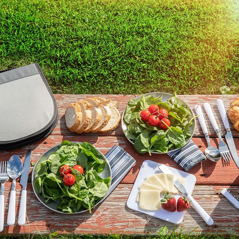 Never lose your eating utensils outdoors again with our compact cutlery set. Brightly colored and organized in a secure bag, it's perfect for any outdoor setting. Dedicated compartments prevent clattering. Lightweight and versatile for travel.