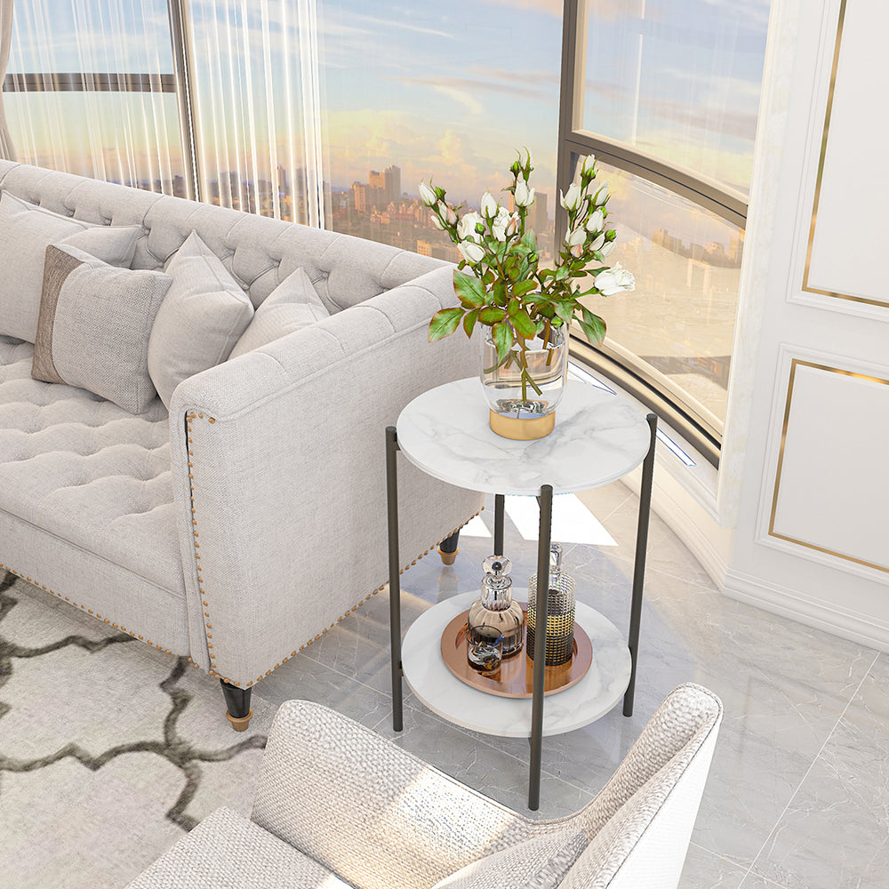 2-tier Round Sintered Stone Side Table Coffee End Table