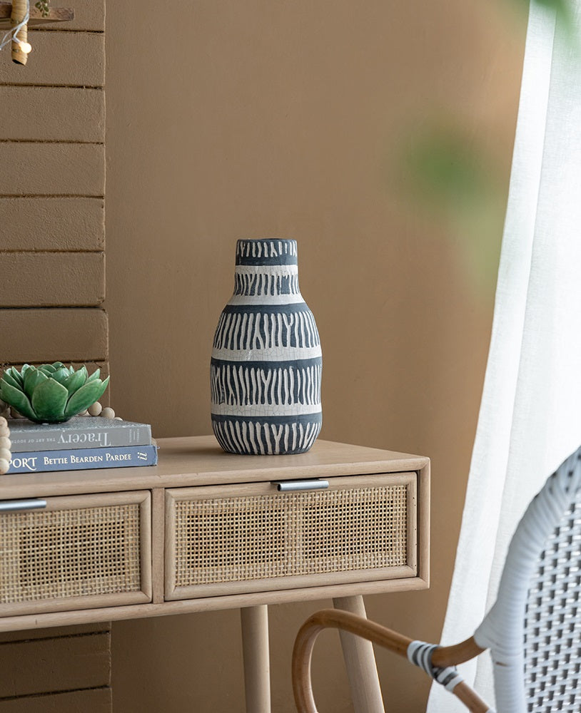 Cream & Grey Tall Ceramic Vase 28cm Crackled Patina Home Decor