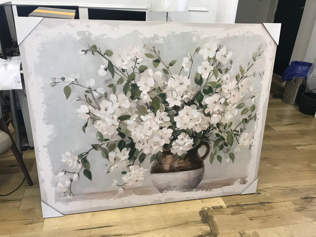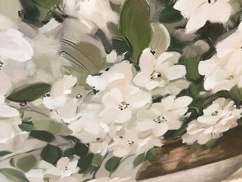 White Wildflowers Bouquet Canvas Print 150x120cm Decorative Wall Art in Two Tone Vase
