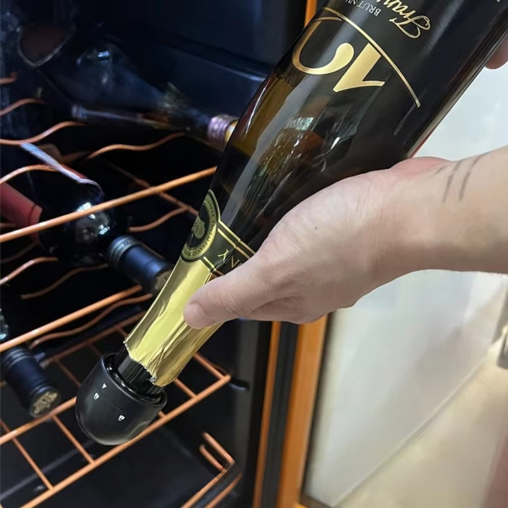 - The champagne corkscrew adopts a rotating design, only needs to rotate the upper part of the cork to unlock, and then plug it into the bottle mouth tightly, and then turn the champagne cork. The upper part is locked back to the original position to achieve sealing save.