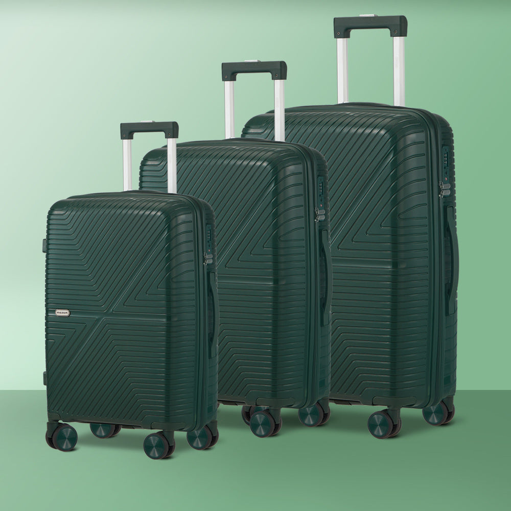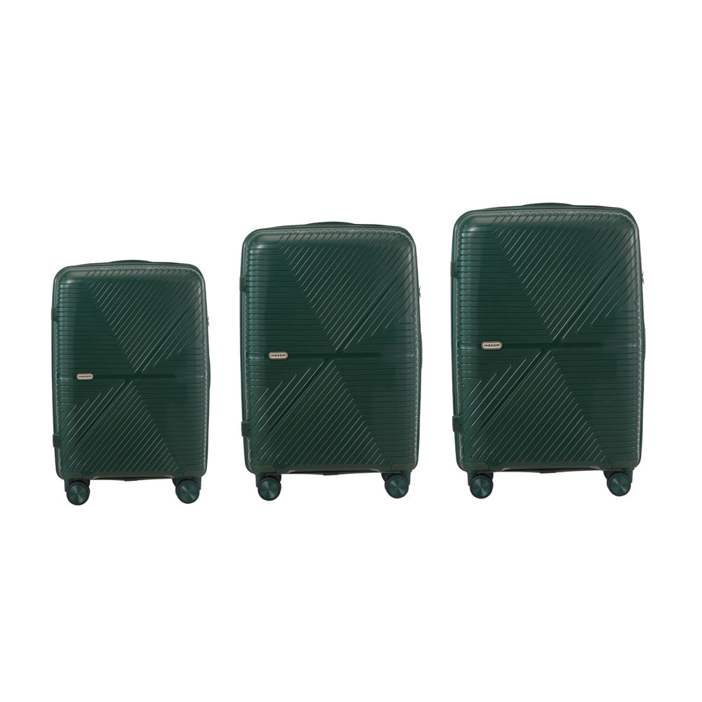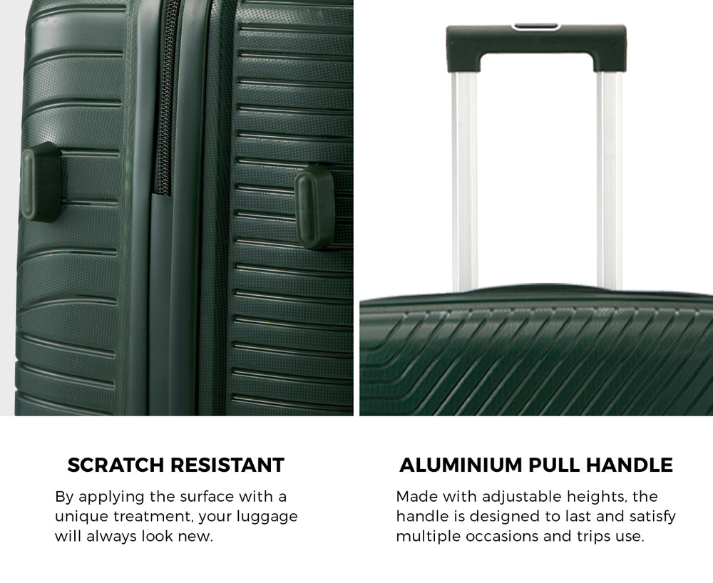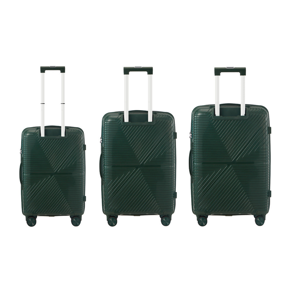 Travel smarter with this 3 piece luggage set designed to combine modern style with practical performance Crafted from durable yet lightweight polypropylene the hard shell provides robust protection against knocks bumps and rough handling while maintaining a sleek contemporary look for any journey