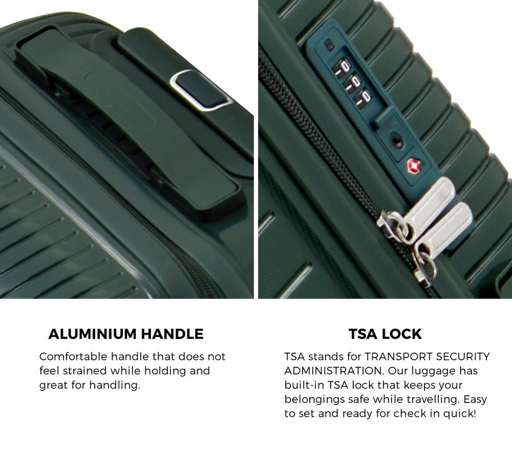 When not in use the three sizes nest neatly inside each other for compact space saving storage making it ideal for apartments or small homes With clean lines and a fresh green finish this luggage set is perfect for any adventure from quick getaways to long haul trips