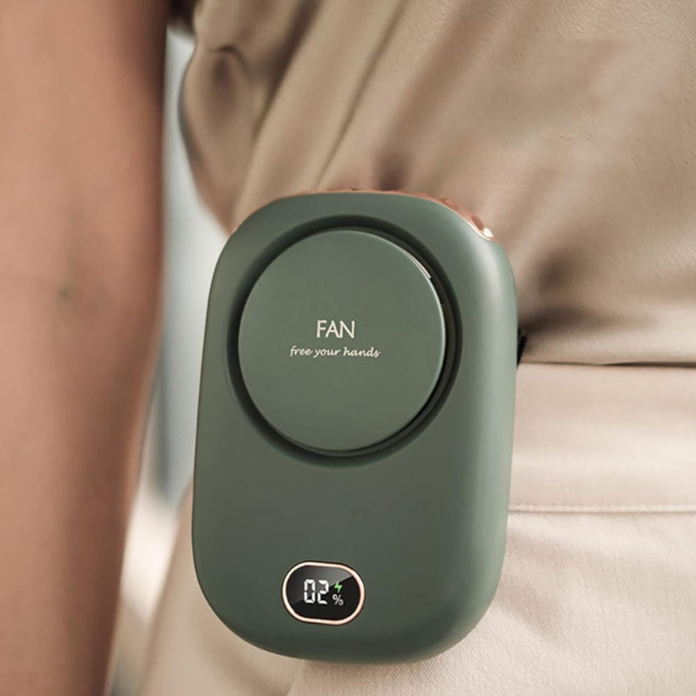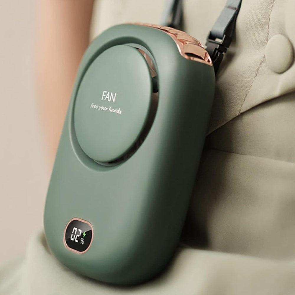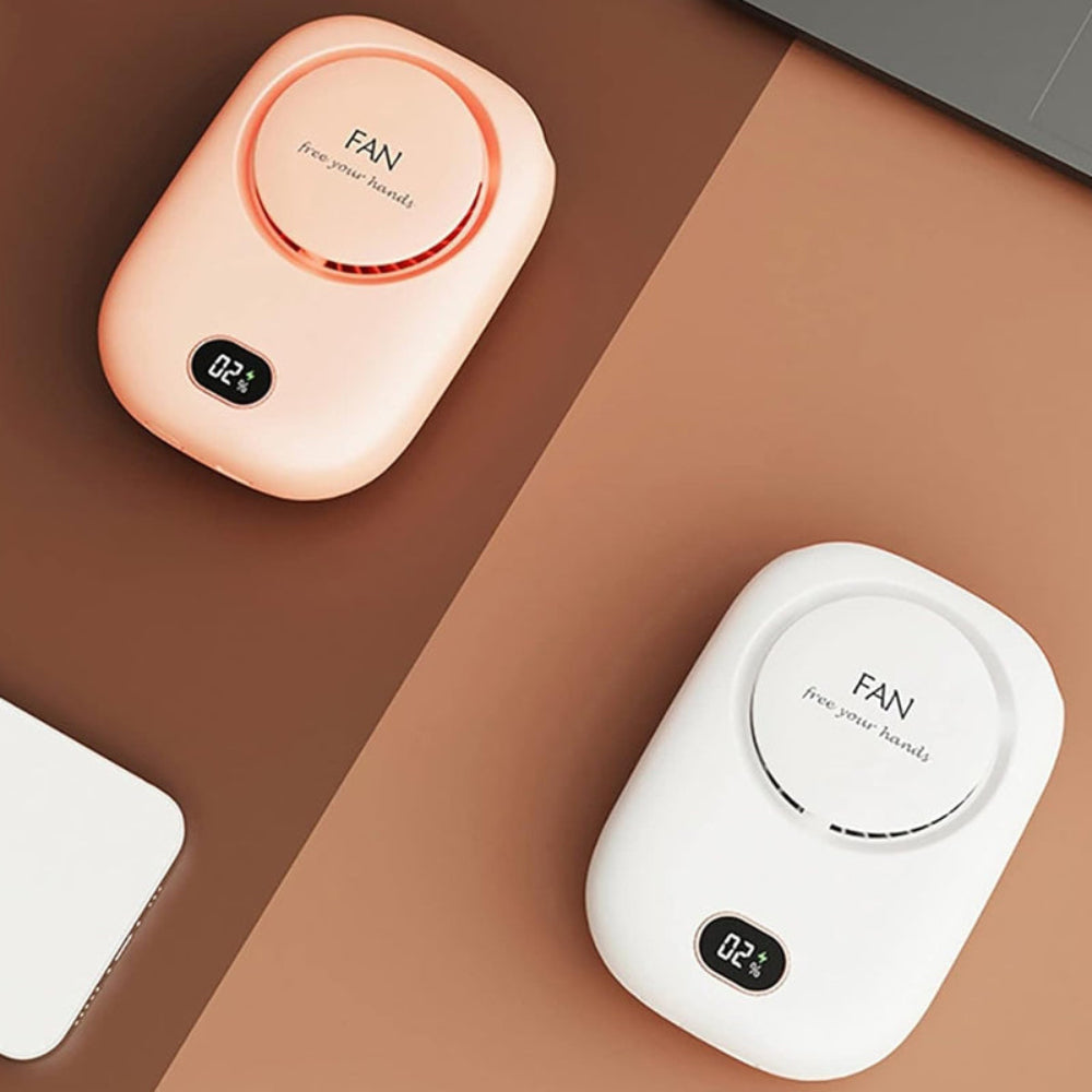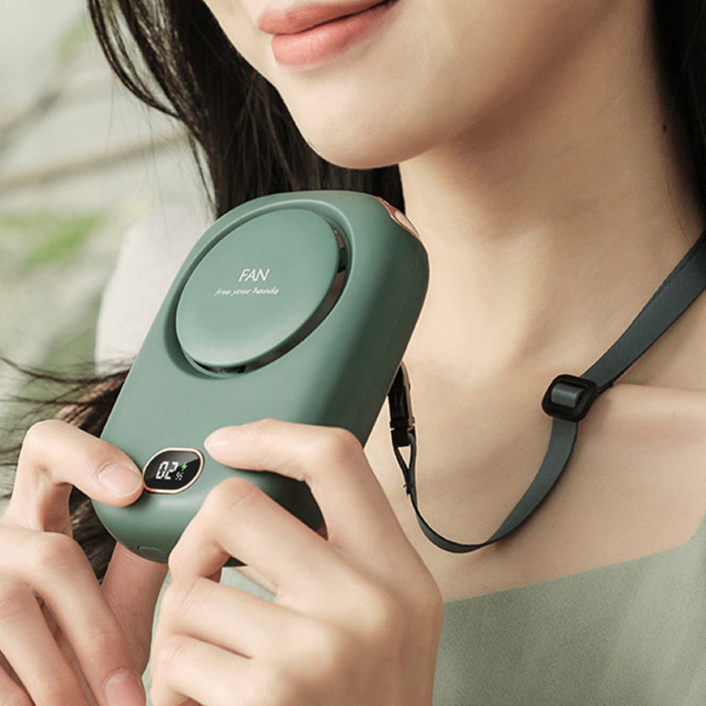 - This portable neck fan comes with an adjustable lanyard. You can hang it around your neck. The mini fan is also designed with a bracket, so it can be put on the desk and is also convenient to hang on the waist if you need to and enjoy the cool breeze anytime, anywhere.