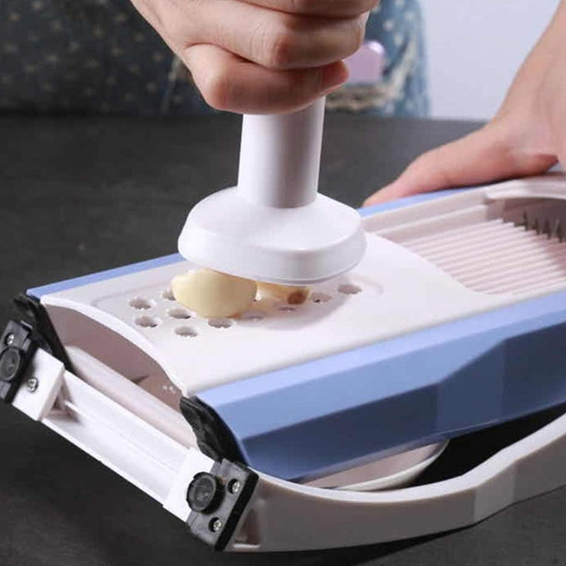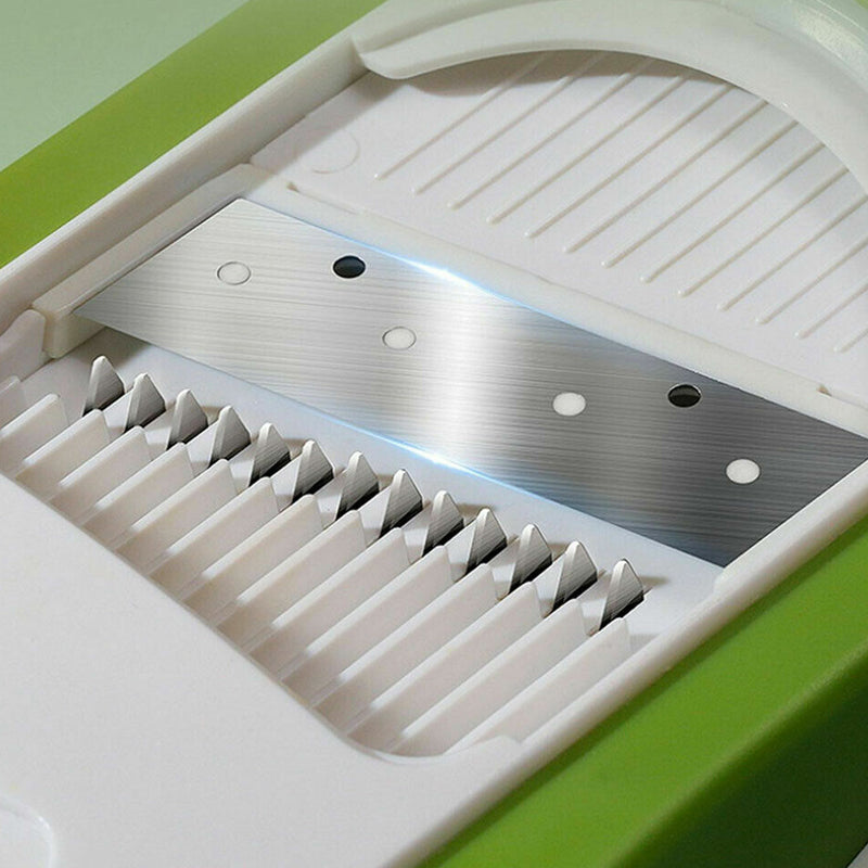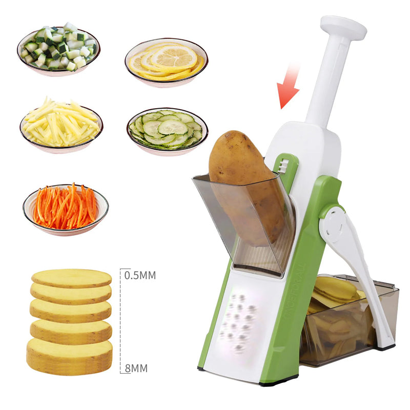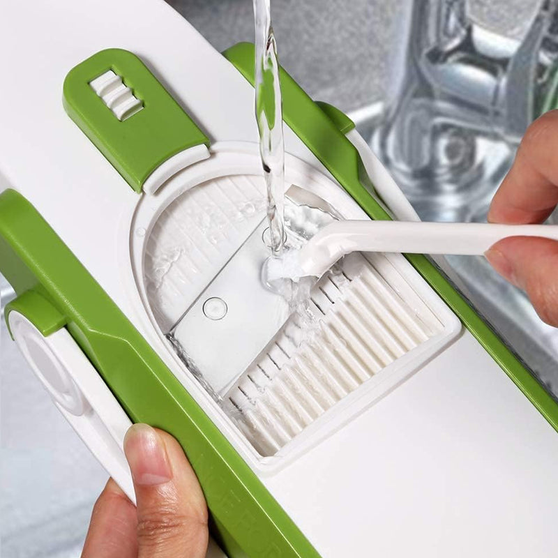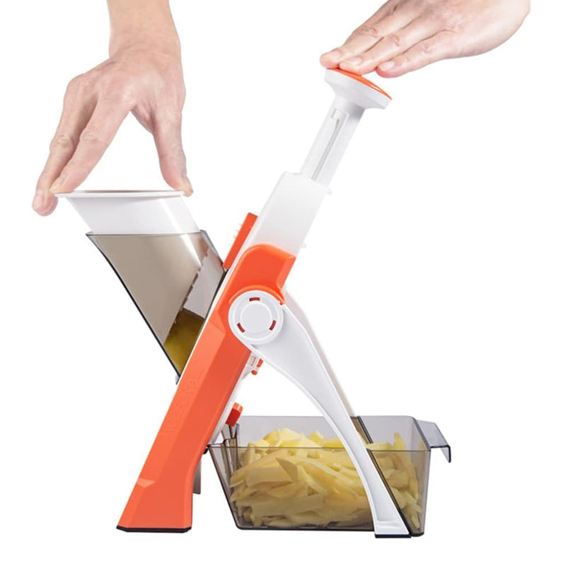 This mandolin slicer ensures safety with a unique design that keeps your hands away from the blades. Offering 30+ slicing options, it delivers perfect slices and various cutting styles. The compact design folds for storage, includes a cleaning brush, and is an ideal gift for weddings or housewarmings.
