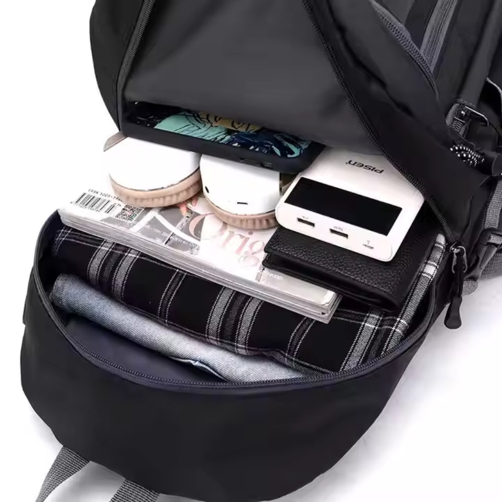 - This camping backpack also prioritizes safety with reflective signs for better visibility. Elastic and fasteners on the sides securely hold trekking sticks, and its lightweight design makes it ideal for day hikes, outdoor travel, camping, and even business trips.