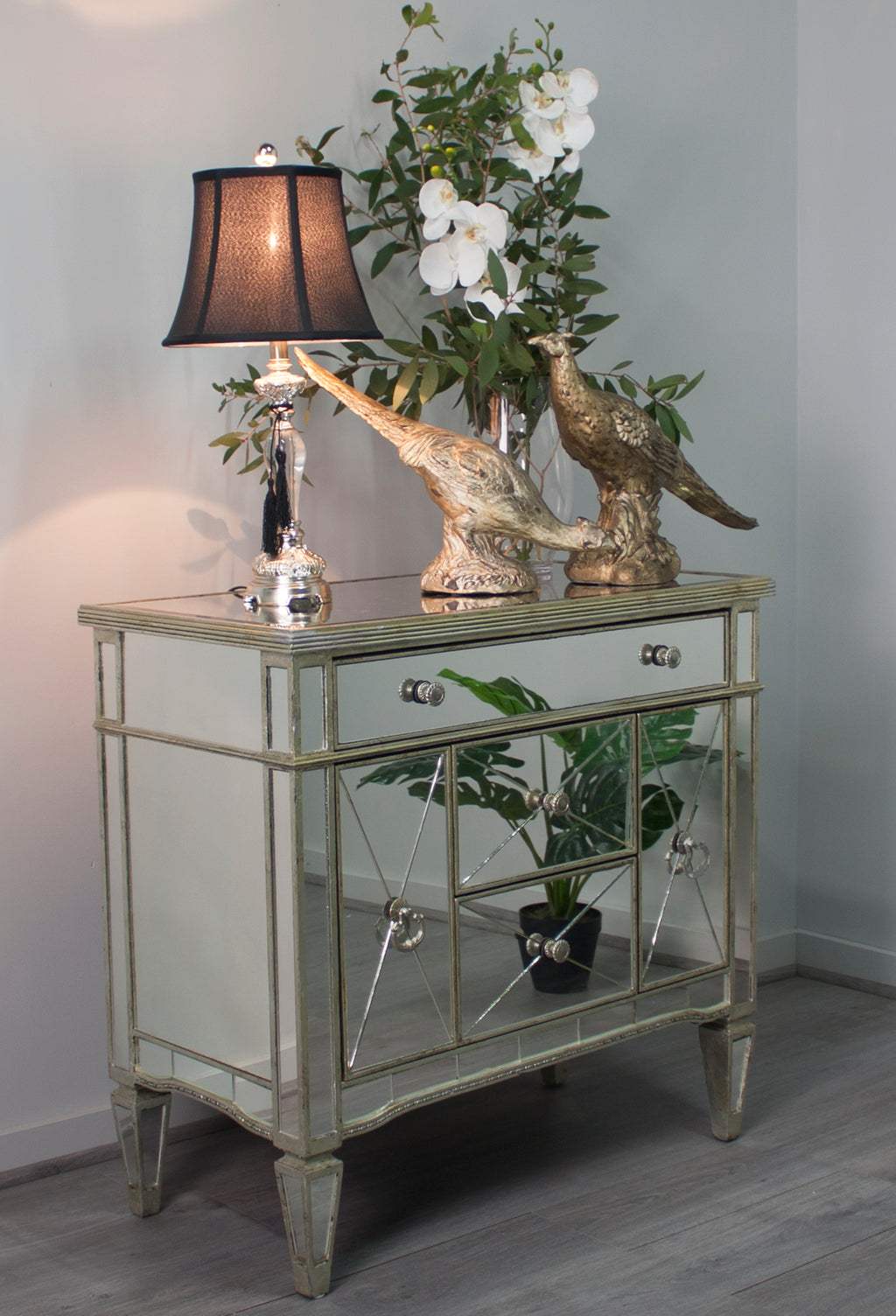 Mirrored Dresser Nightstand 5 Drawers Antique Ribbed Gold Leaf Hollywood Style