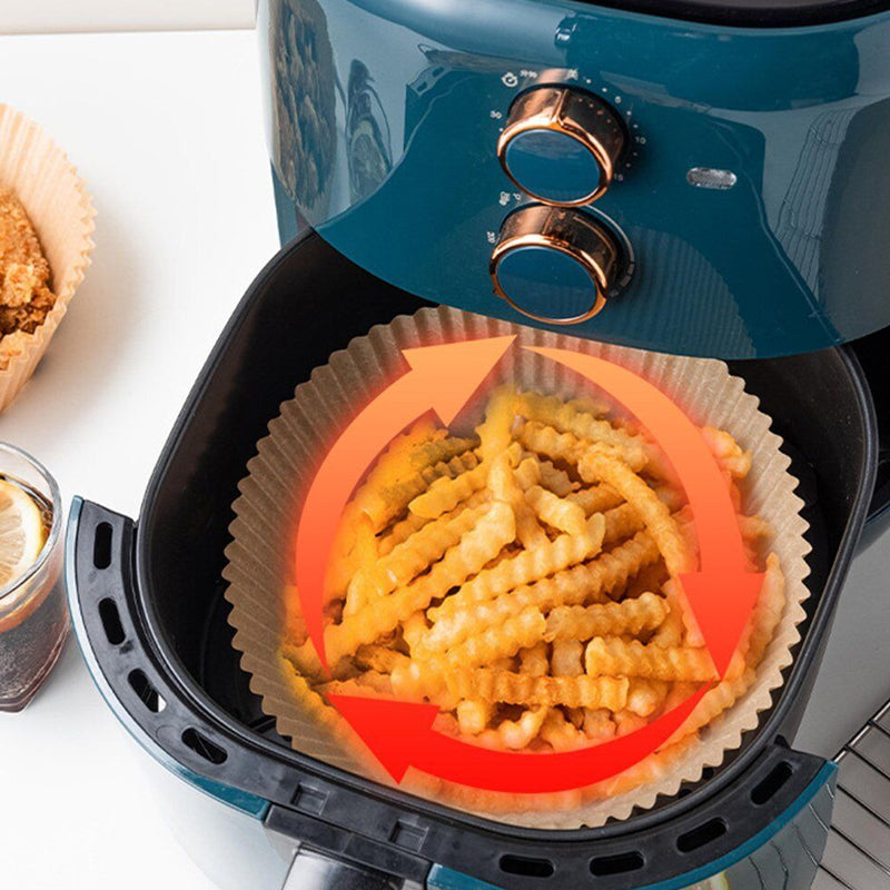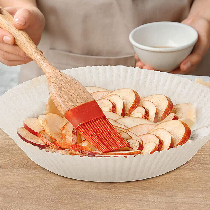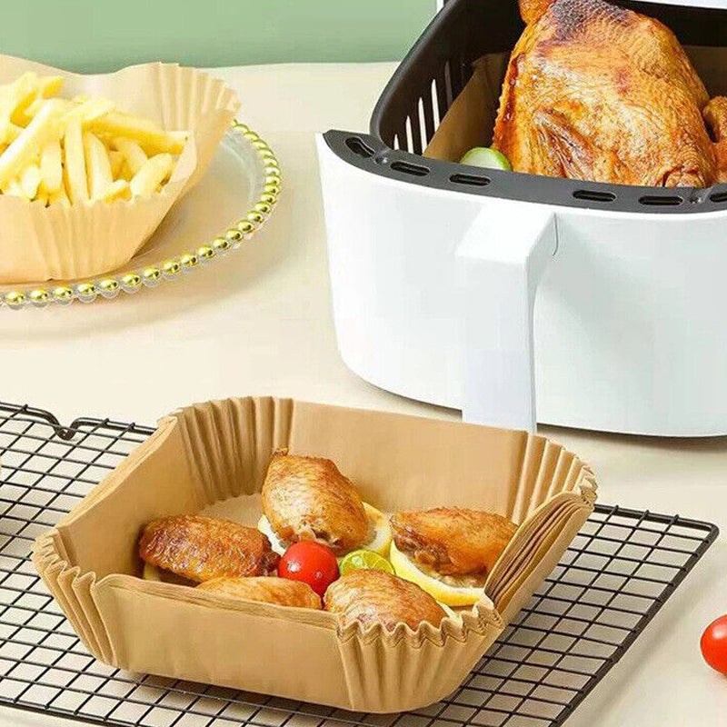 The air fryer liner is crafted from food-grade parchment, ensuring safety and convenience. Waterproof, oil-proof, and non-stick, it maintains food integrity while withstanding temperatures up to 200°C. Unbleached and free from harmful agents, it guarantees safe and mess-free baking. Disposable liners keep fryers clean, saving time and effort. With no impact on air circulation, they promote healthier cooking by collecting excess grease.