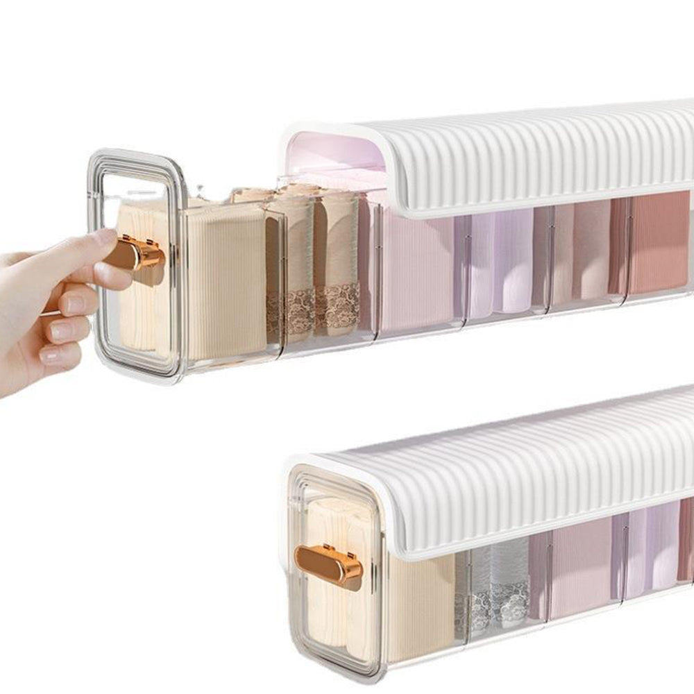 - Experience the ultimate in organization with this Wall Mounted Underwear Socks Storage Box. This versatile storage solution allows you to customize the compartments to suit your specific needs, making it perfect for storing not only underwear and socks but also remote controllers, phone chargers, and other medium-sized items.