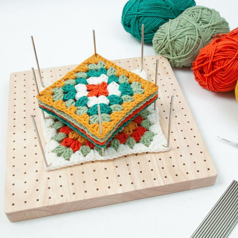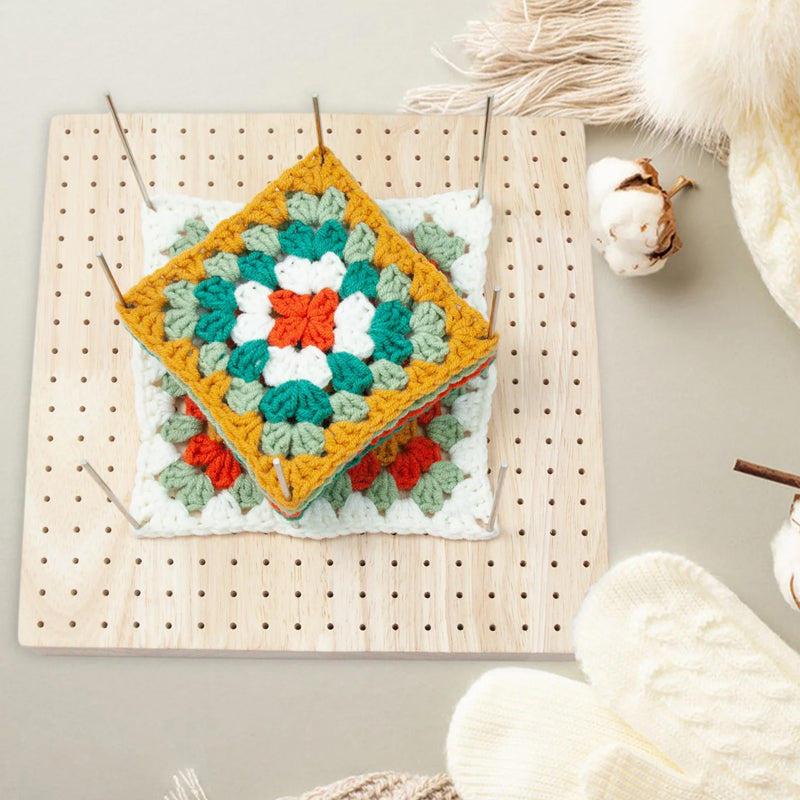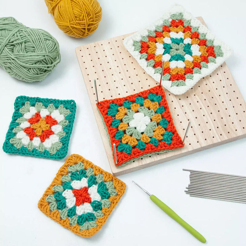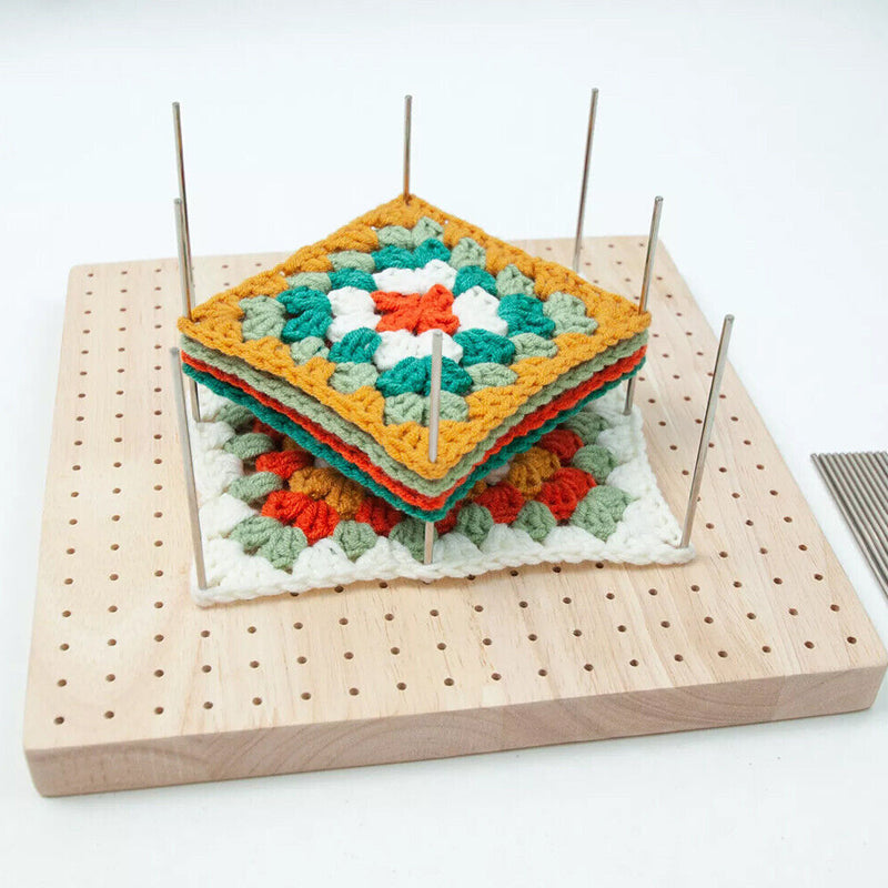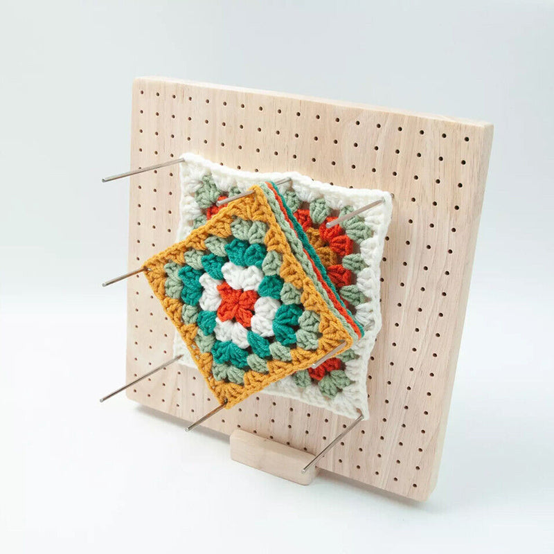 - The crochet lock board is made of fine wood, making it reliable and sturdy. The knitting blocker has 324 small holes, each of which is 0.5 inches apart, which allows you to easily organize your projects and complete them accurately.