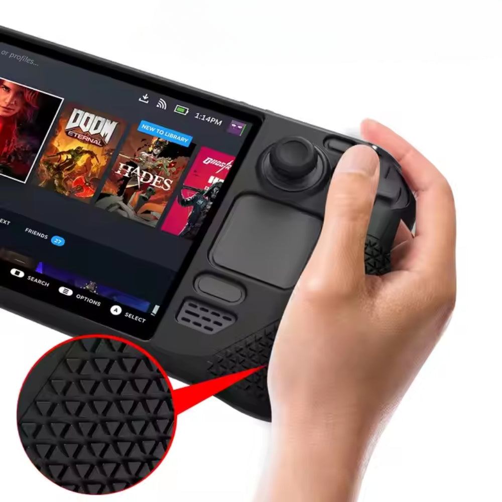 - Made from high-quality silicone material, the protective case is sturdy and shockproof, offering strong resistance to drops, impacts, and collisions. It has been designed to maintain the integrity of your Steam Deck, keeping it secure and intact even during rough handling. The case is easy to install and remove, allowing you to charge your device or connect it to peripherals without having to take off the protective shell.