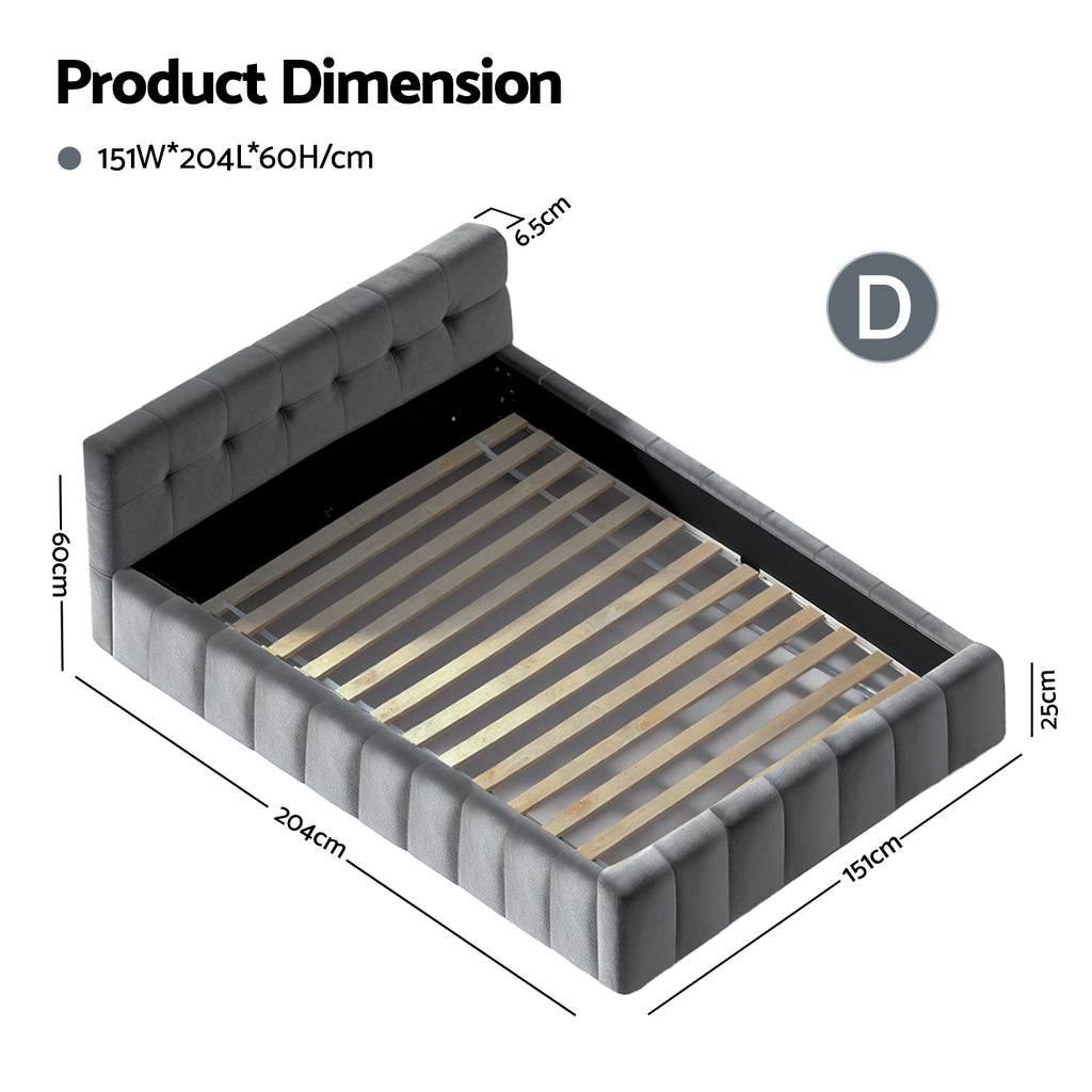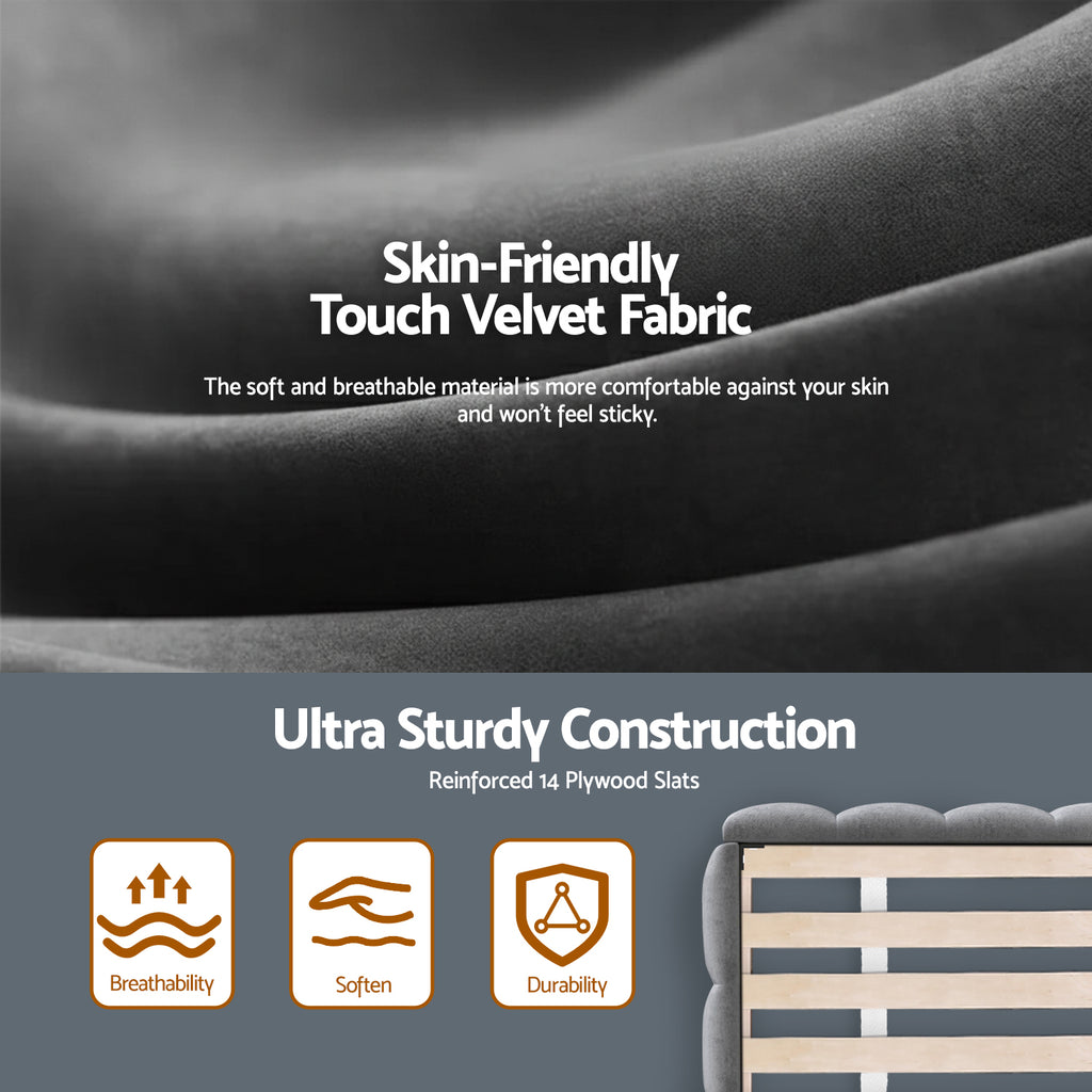 The Artiss Double Bed Frame combines elegance and function with its cloud-inspired plush velvet headboard and modern platform base. Featuring a reinforced plywood-pine frame with 14 support slats and durable metal fixings, it holds 300kg and fits Double mattresses (137cm x 190cm). The smooth-edge velvet upholstery adds luxury while ensuring safety. Quick assembly completes this bedroom upgrade.