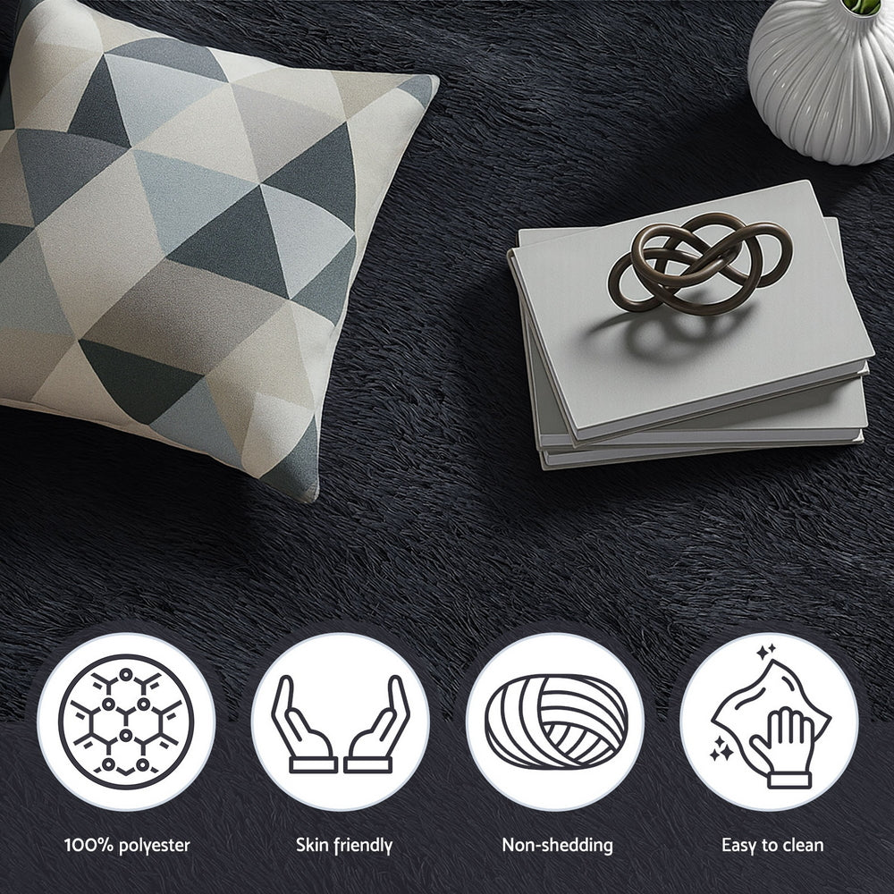 Artiss Floor Rug 200x230cm Plush Area Shaggy Rug Living Room Bedroom Carpet Black