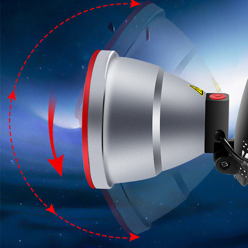 This headlamp features LED lamp beads with an upgraded light cup, emitting high-brightness, long-range shot light. It includes a battery indicator and can charge USB-compatible mobile phones. With a life waterproof rating, it withstands splashes but should not be submerged. Multi-angle adjustment and enhanced heat dissipation ensure comfort during use, with an independent switch for easy control. The irradiation angle is adjustable up to 90 degrees, with a lighting range of 350m and three high-capacity lithium batteries lasting up to 8 hours. It serves as both a headlight and a productivity tool for various industries, perfect for night patrols, rescue operations, camping, fishing, and more.