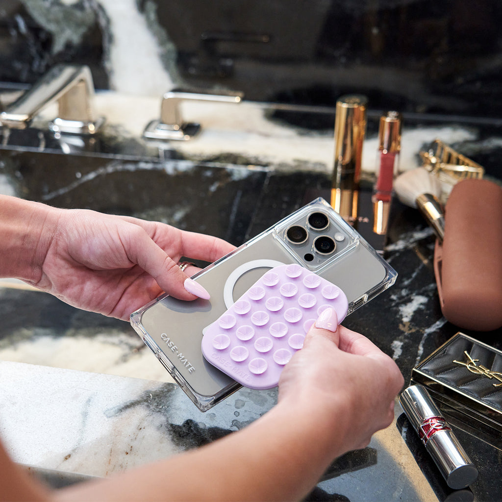 Introducing the Case-Mate Stick It! MagSafe Suction Phone Mount, your ultimate hands-free solution for photography, videography, and multimedia enjoyment. With strong built-in magnets tailored for MagSafe compatibility, it securely connects to iPhonee 15, 14, 13, and 12 series phones, and MagSafe cases. Eliminate messy adhesivesùthe mount attaches and detaches effortlessly, leaving no residue. For non-MagSafe phones, a magnetic ring is included for universal compatibility. This mount not only simplifies photo and video capture but also enhances your streaming and video-watching experience. Mount your phone to windows, mirrors, and smooth surfaces to enjoy content from any angle. Whether streaming shows, watching videos, or video calling, it offers a versatile hands-free solution. Please note it's designed for smooth surfaces and is not suitable for textured walls or brick.