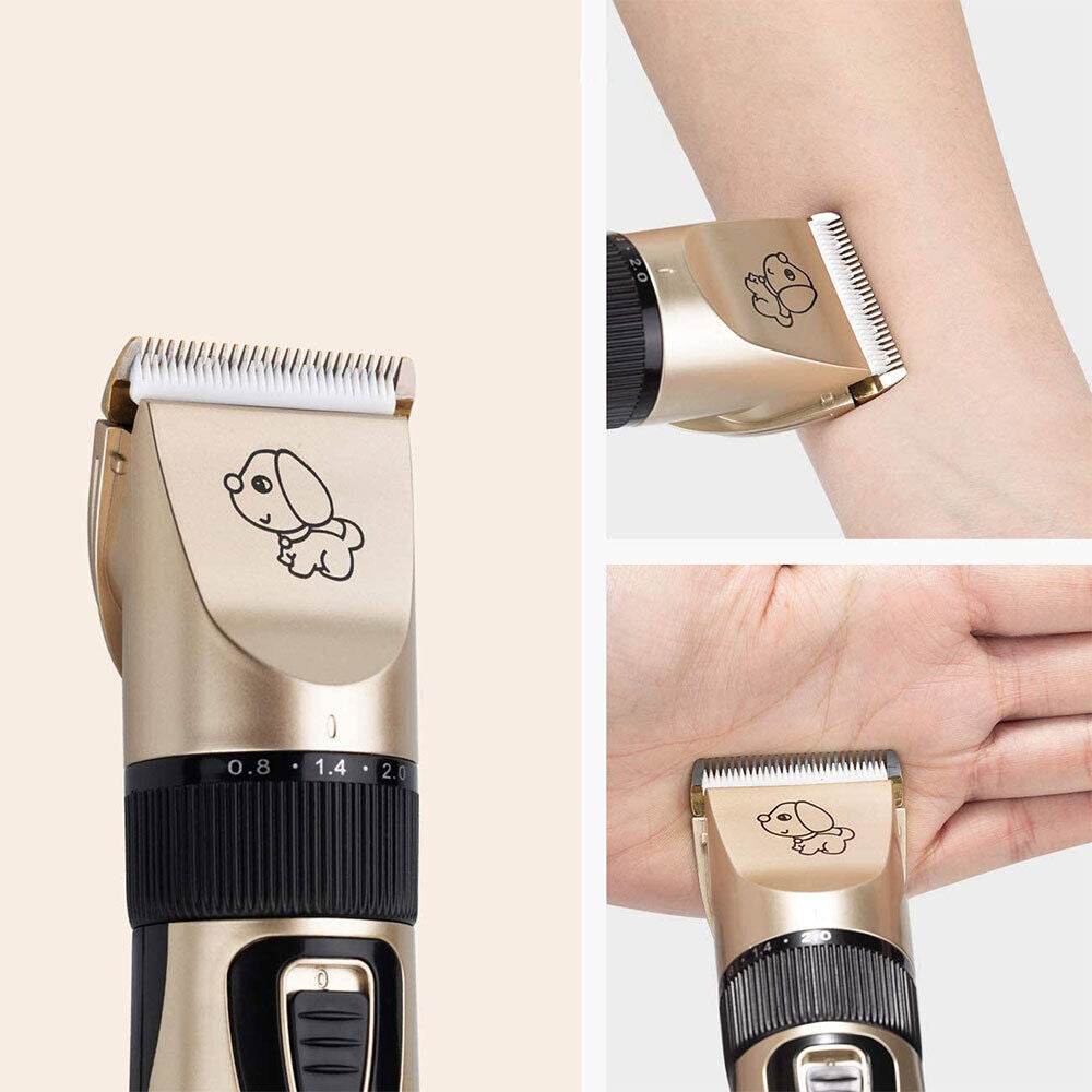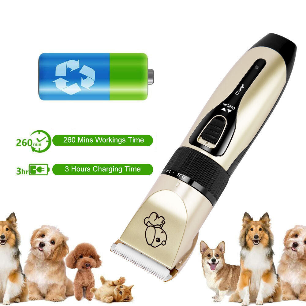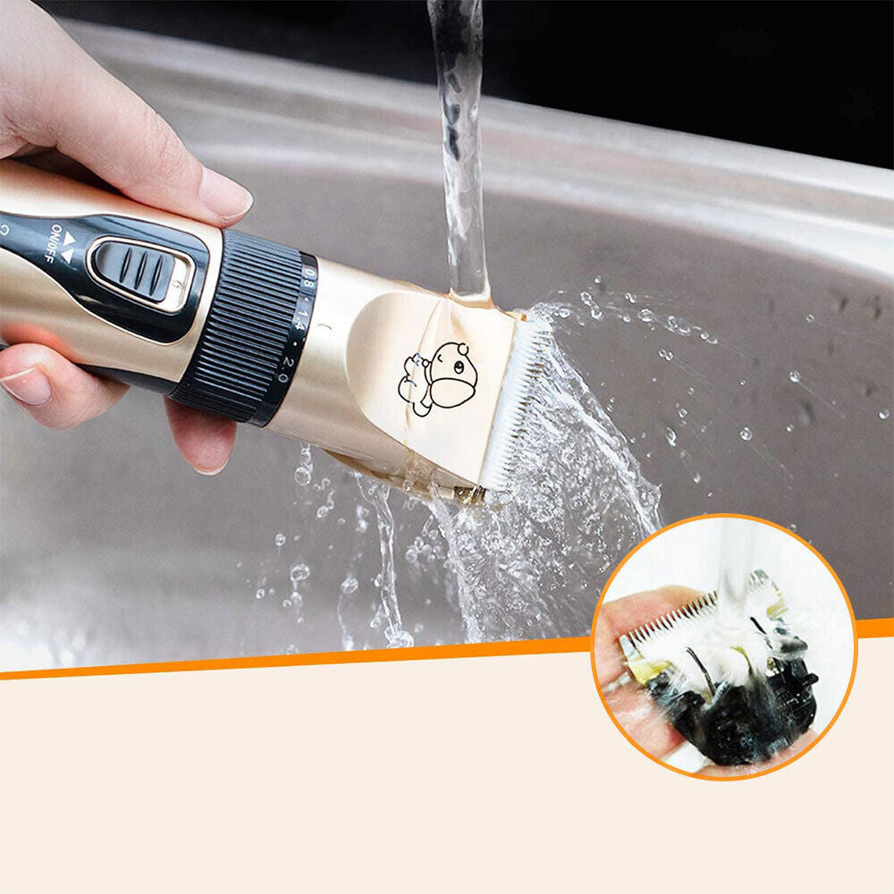 Achieve precise and long-lasting grooming with our Pet Hair Clipper. Featuring a sharp titanium blade and ceramic movable blade, it ensures efficient trimming without causing skin allergies. With 4 attachment guide combs, it's suitable for pets of all sizes, offering safe and comfortable grooming. The low-noise copper axis motor keeps noise below 50db, ensuring a stress-free experience for your pet. Plus, its cordless design provides freedom of movement, with up to 50 minutes of operation on a single charge.