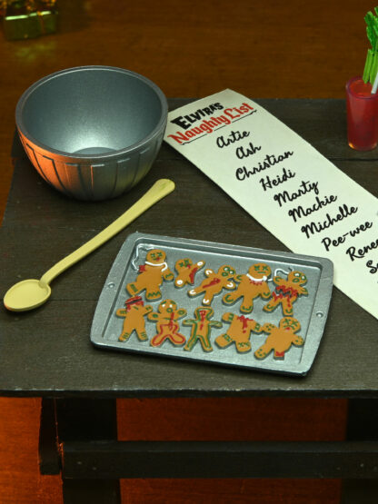 - Accessories include: Bloody Mary cocktail, naughty list with quill, tray of gingerdead men cookies
