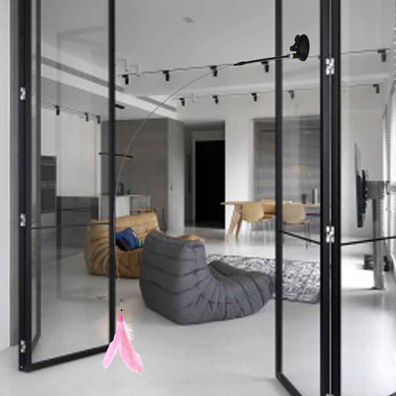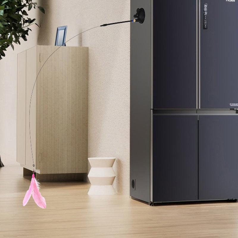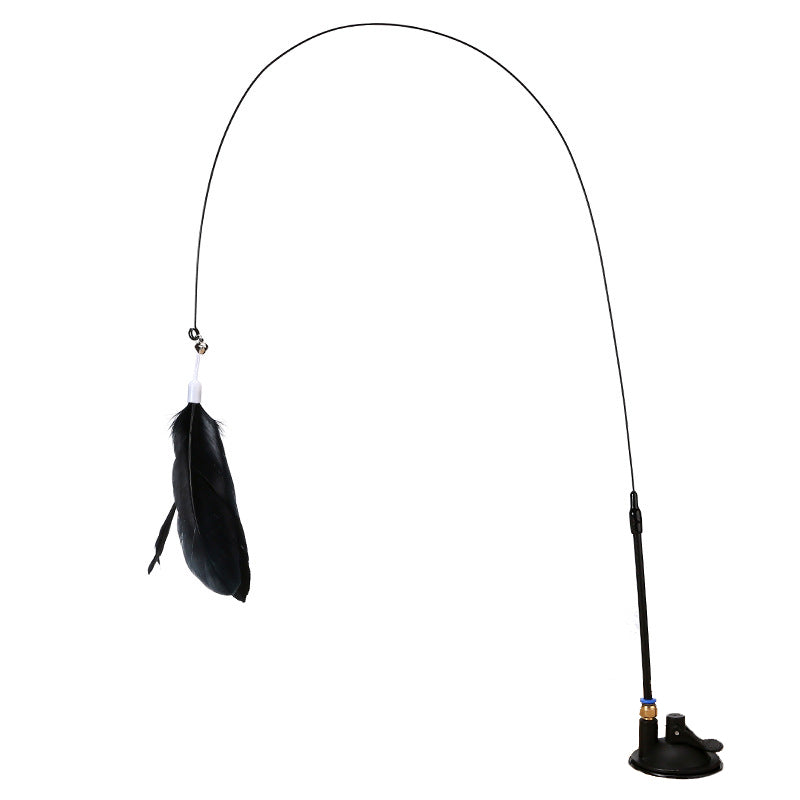 - The cat feather toy can stimulate interest in play and evoke the cat's natural instinct to follow and play. It features a stable suction base that can hold it securely in place, suitable for smooth floors, tables, and glass doors.