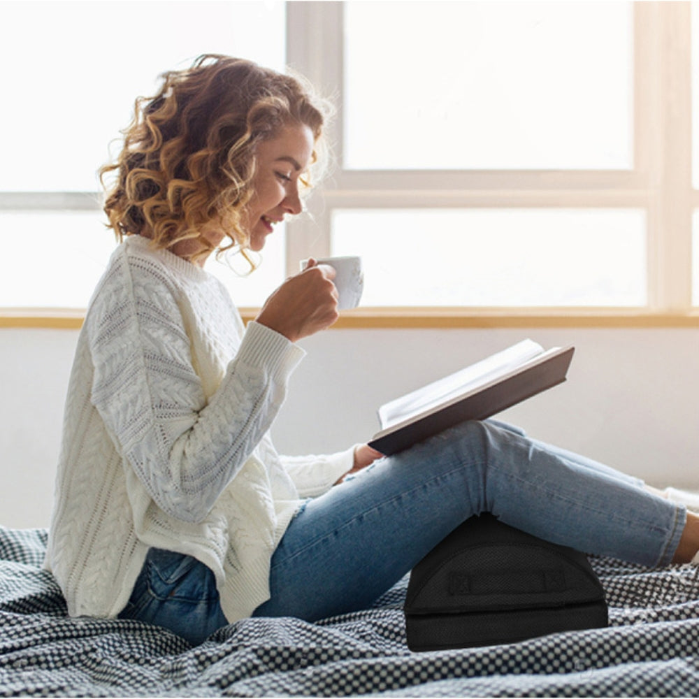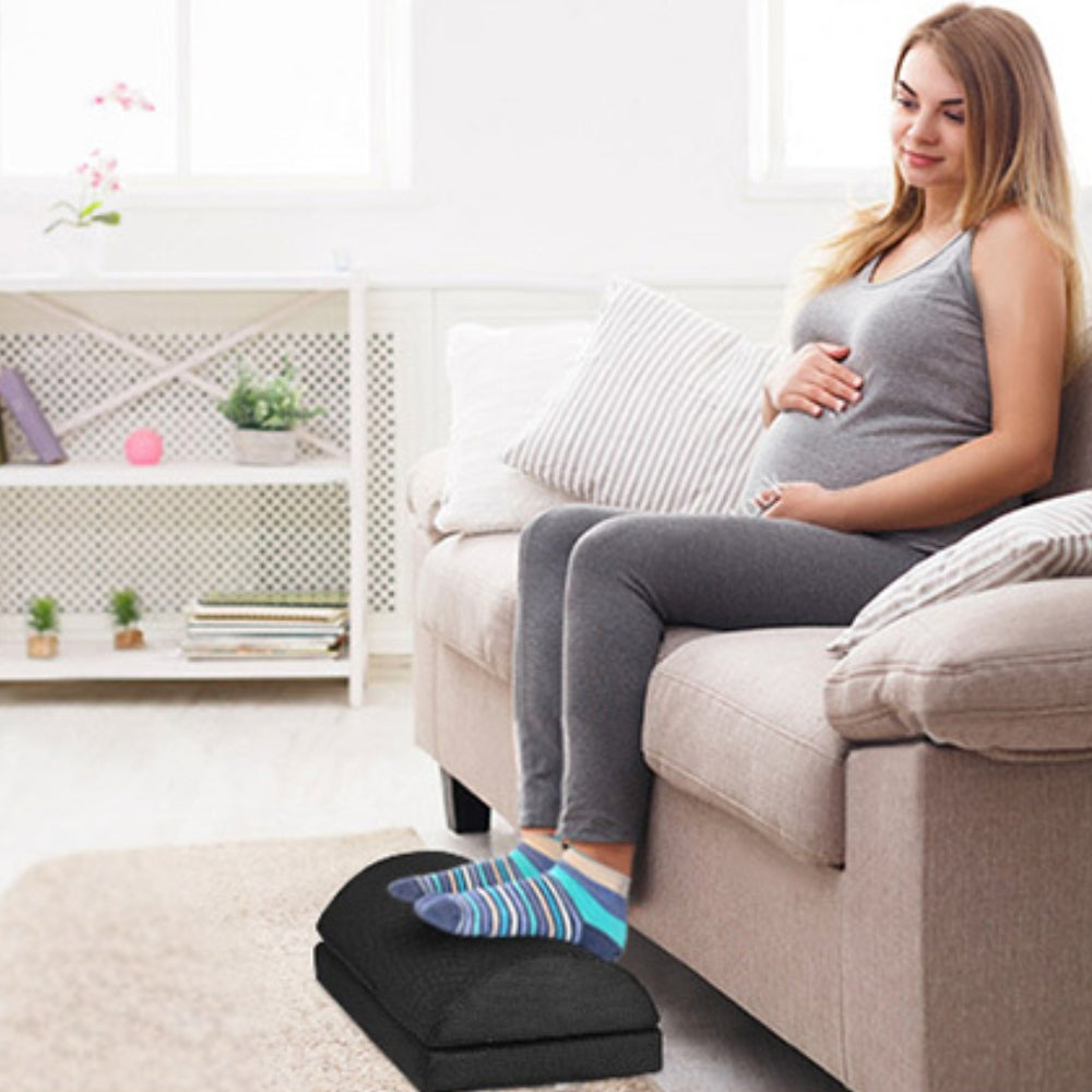 - This foot rest pillow is an essential accessory for anyone who spends long hours sitting, whether at a desk or on the couch. Proper sitting posture is crucial for maintaining comfort and preventing fatigue. This innovative foot stool promotes an upright sitting posture, reducing strain on your spine and belly. Ideal for various settings, it helps you stay comfortable while working on your laptop or relaxing at home. The removable cover is made from OEKO-TEX certified fabric, ensuring it's both anti-bacterial and anti-mite for a fresh and clean experience. Additionally, it’s easy to maintain as the cover is machine washable. With multiple uses, you can even flip it over and use it as a rocker to improve circulation. Enjoy the comfort and support it provides, and take a step toward achieving the ideal sitting posture.