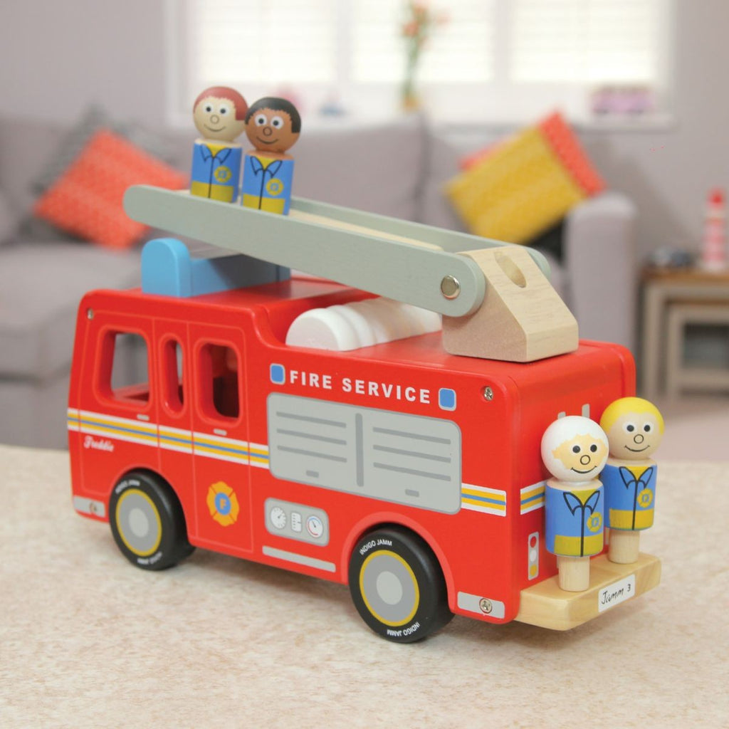 1 x Wooden Freddie Fire Engine Red Fire Truck with Peg Firefighters