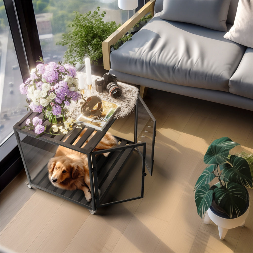 - Built with a sturdy aluminum frame, this cage offers superior durability and rust resistance compared to traditional wire crates. It is designed to withstand even the strongest and most aggressive pets, with its tempered glass resistant to bites and impact. The double-door design allows for easy entry and exit, while the doors are equipped with double stainless steel locks for added safety, preventing escapes. This ensures a secure and strong environment for pets of all temperaments.