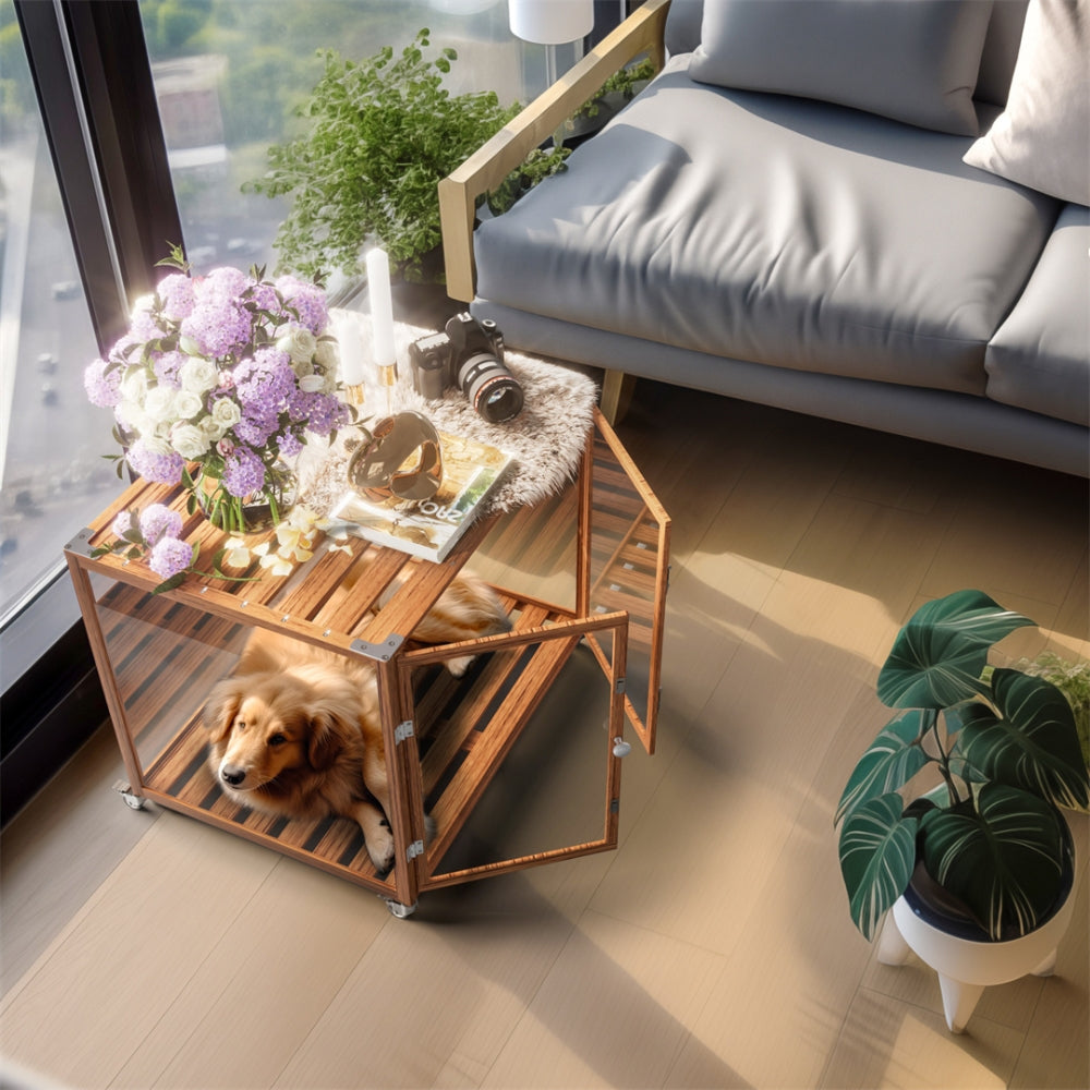 - In addition to its innovative design, the playpen is equipped with ultra-silent wheels for smooth, noiseless mobility and a removable tray that makes cleaning easy. The wheels can be locked to keep the cage securely in place, and the tray catches food or waste, making it simple to maintain a clean environment without having to move the entire cage. Available in multiple sizes, this pet cage offers ample space for dogs of all breeds and sizes, providing a comfortable and secure spot for them to relax. The sleek design also allows for customization with DIY decorations, adding a personal touch to your pet’s space.