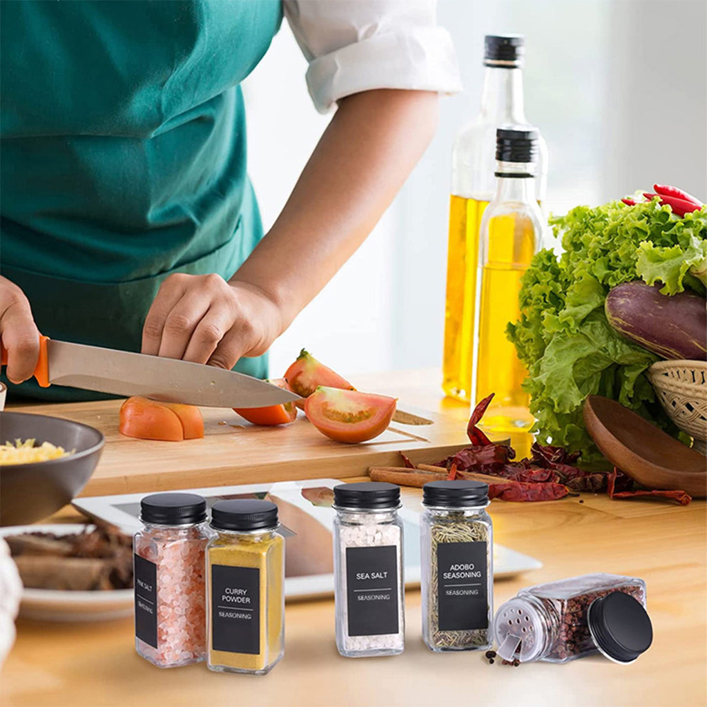 Hivvago 12 Pack Glass Spice Jar Set 120ml Airtight Square Jars with Shaker Lids Labels Funnel and Brush