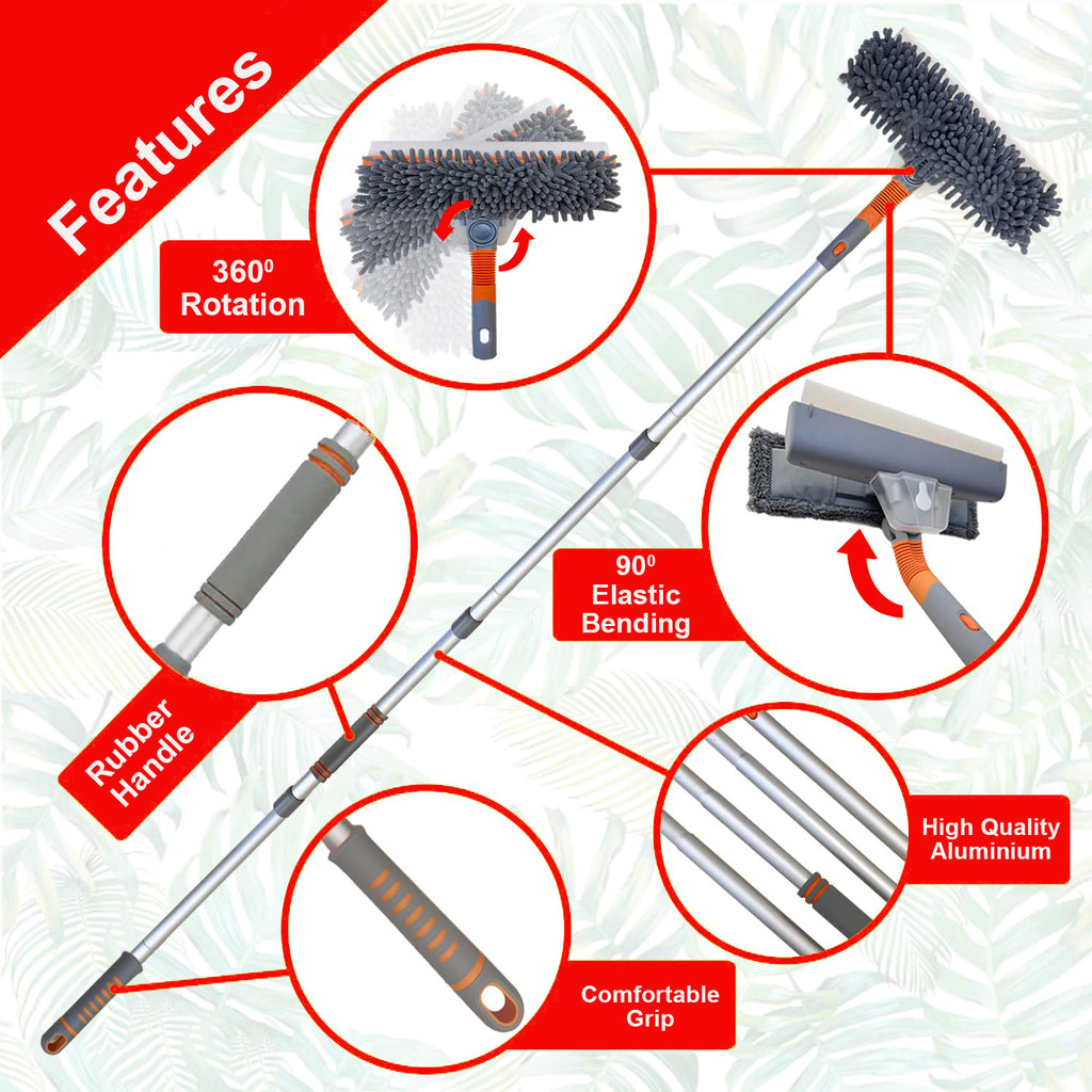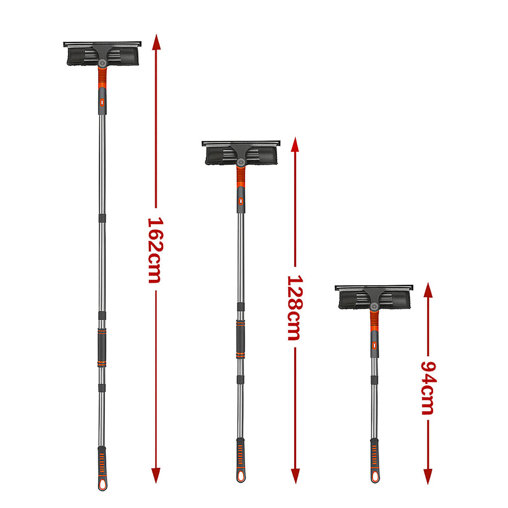 - Its 180° rotatable head and ergonomic handle help you reach tricky corners, while the adjustable extension pole extends up to 162 cm, making it ideal for tall windows, shower glass, and even car windshields. The thickened aluminum pole is lightweight yet sturdy, reducing strain while offering extended reach.