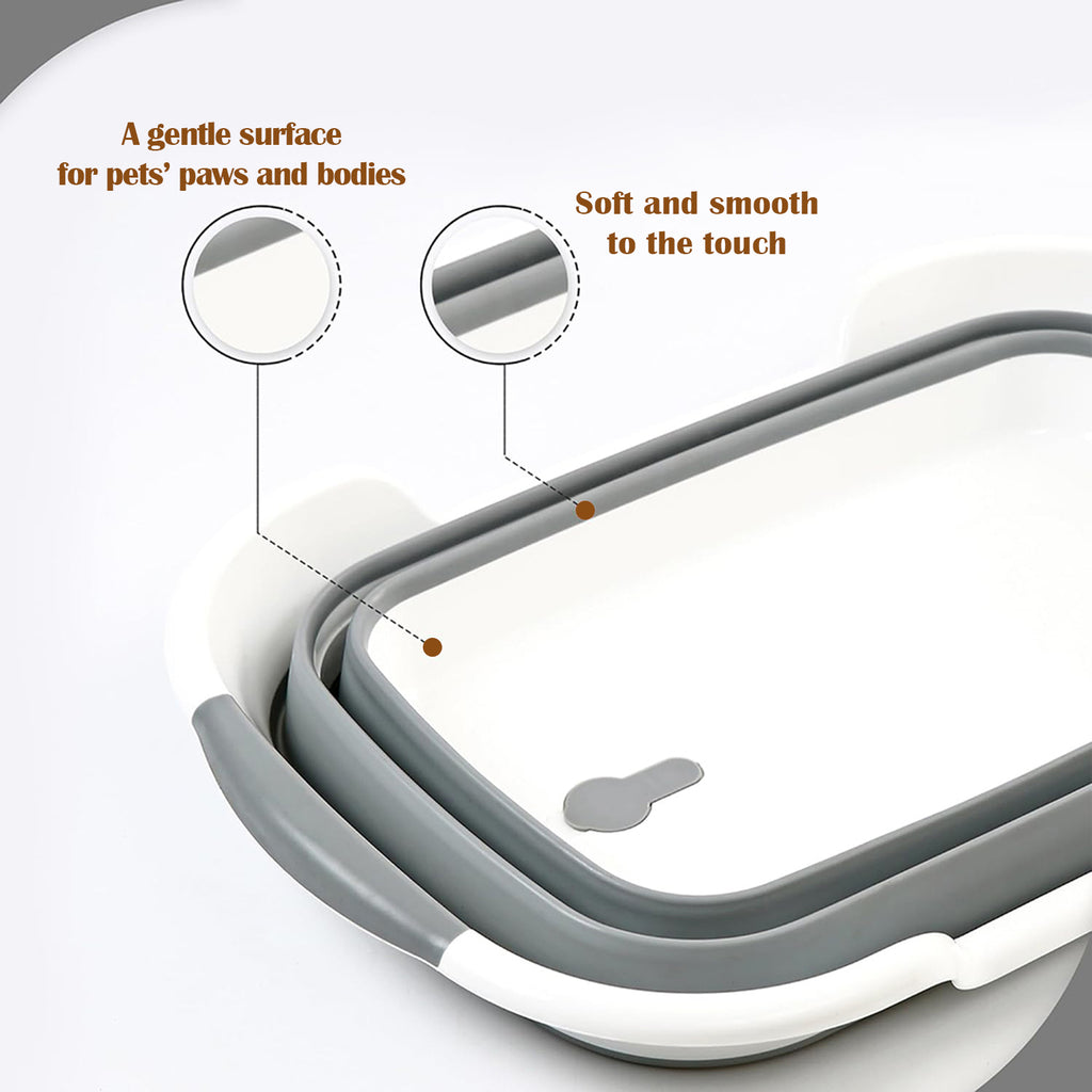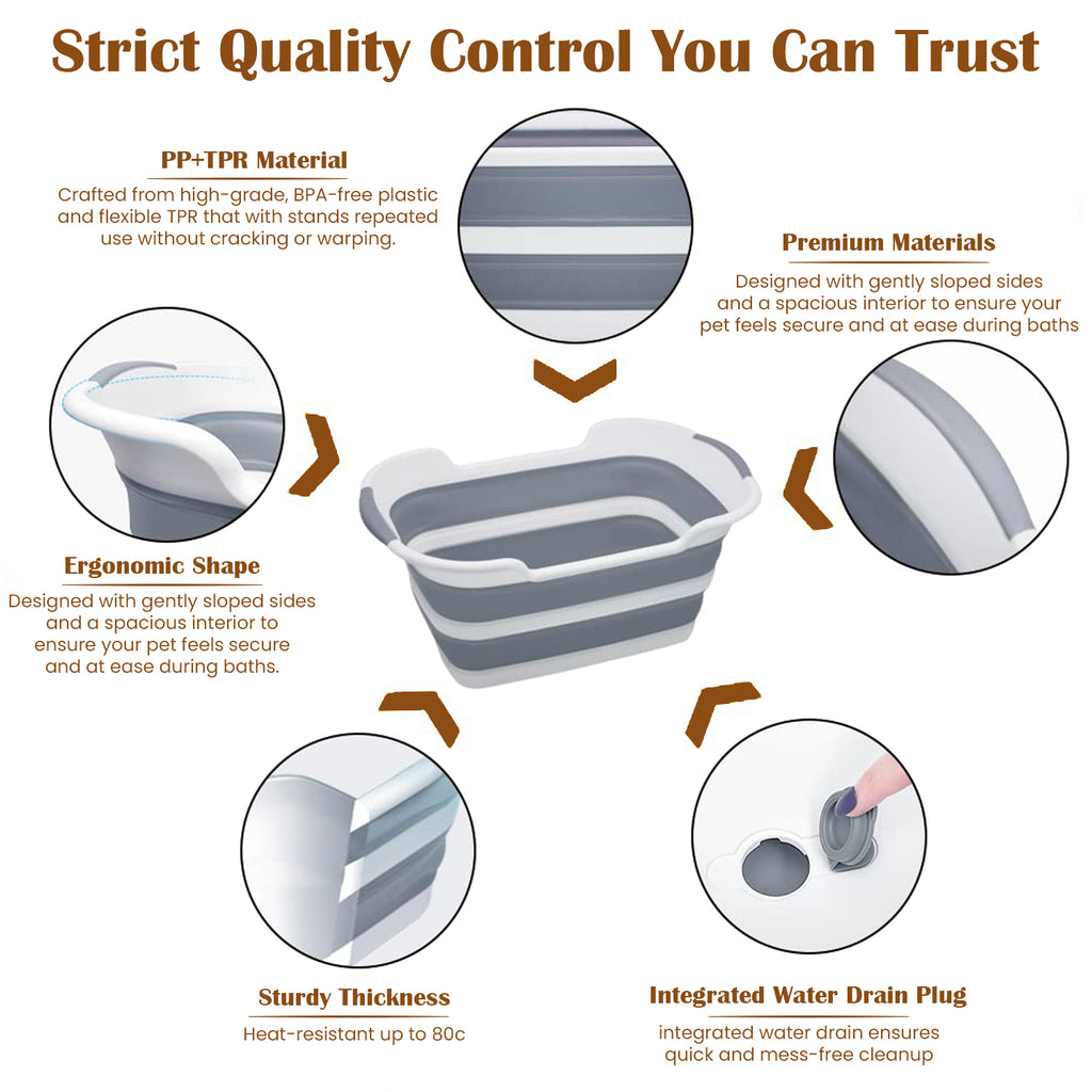 PupLily Collapsible Pet Bathtub – Foldable Wash Tub with Drain, 60.5×38×28cm
