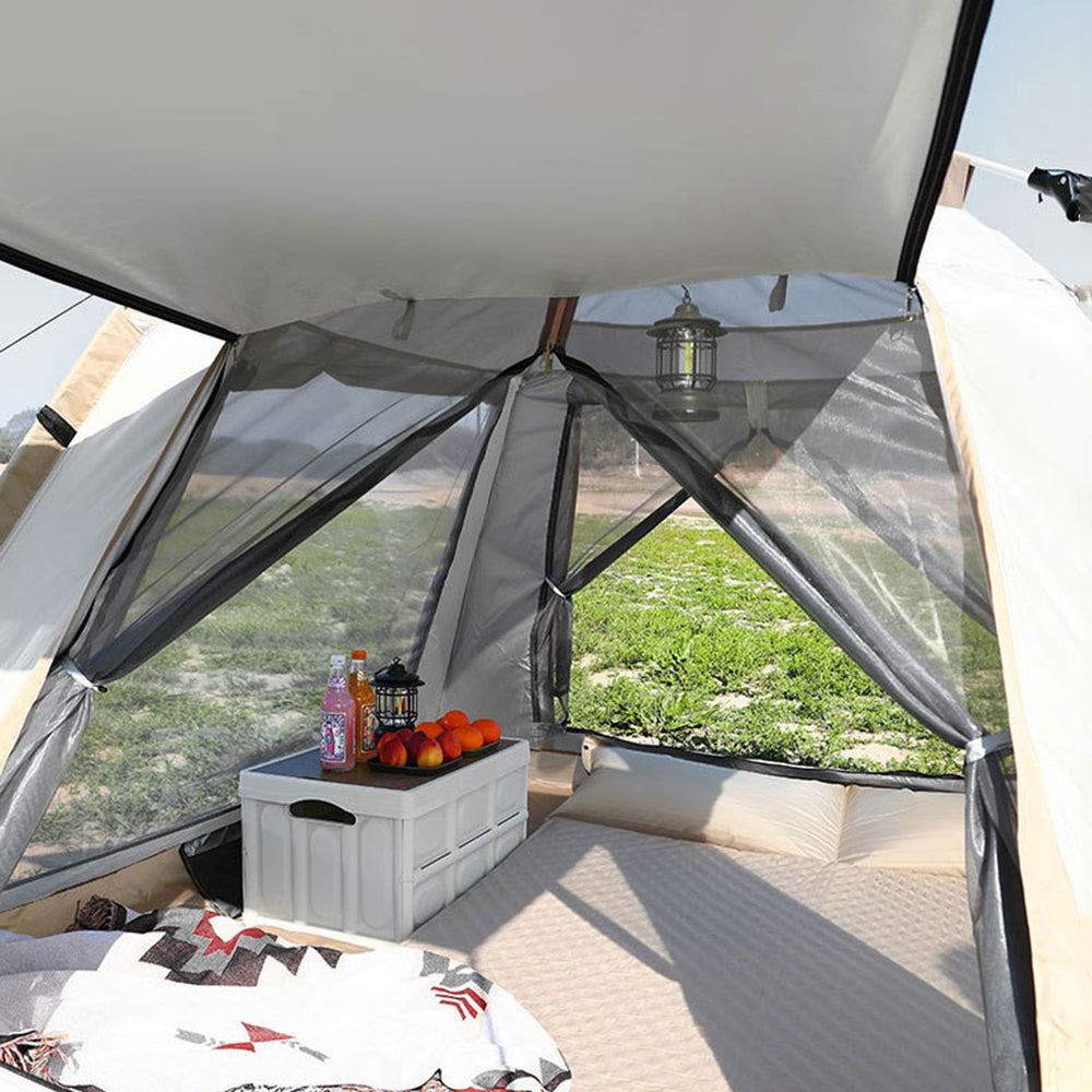 Levate your outdoor adventures with the UPF50+ Easy Pop Up Outdoor Camping Tent, accommodating 3-4 people for couples, families, or group outings. Crafted from durable silver-coated Oxford material and featuring a sturdy fiberglass pole frame, it offers reliable protection from the elements and harmful sunlight. Its quick pop-up design ensures effortless setup, while large mesh screens provide ample ventilation and insect protection. After use, fold it easily into the provided carrying bag for convenient transportation, ensuring comfort and convenience wherever your adventures take you.