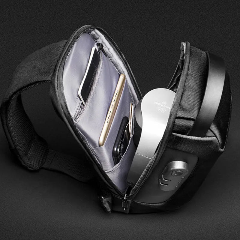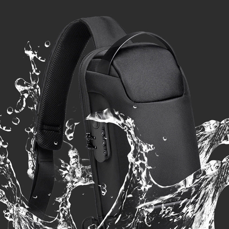Made from high-quality Oxford cloth, this waterproof sling bag is soft, washable, and wear-resistant. The breathable padded back and adjustable shoulder strap provide comfort, while multiple compartments ensure organized storage for items like iPad, phones, power banks, water bottles, and cosmetics. With flexible straps and an anti-theft function featuring a password lock, it offers practicality, safety, and convenience.