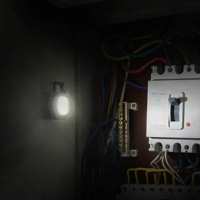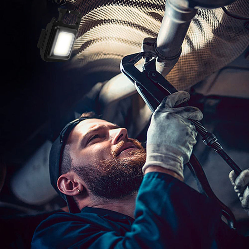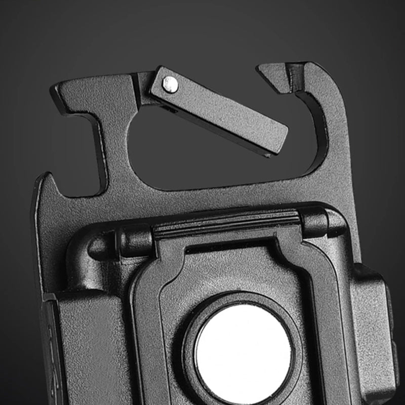 Illuminate your surroundings with this powerful keychain flashlight emitting up to 800 lumens of light. Featuring a large COB Technical LED, it functions as a compact work light and emergency light with a wide-angle flood beam. With three modes (high, low, strobe), it caters to diverse needs, and the USB rechargeable battery ensures convenience. The compact design includes a carabiner for easy attachment to key rings or bags, making it water and impact-resistant, and it even doubles as a handy bottle opener.