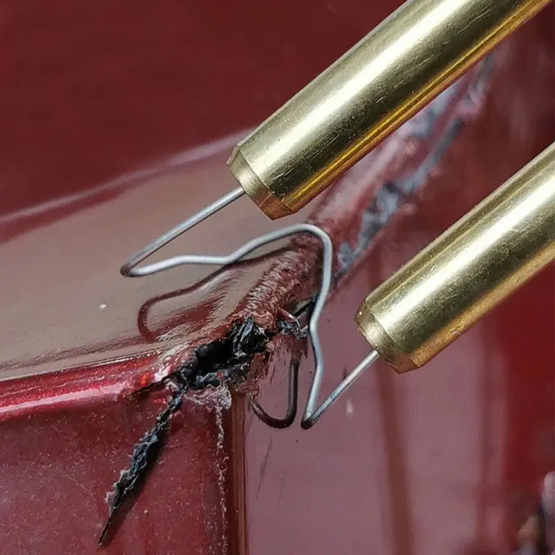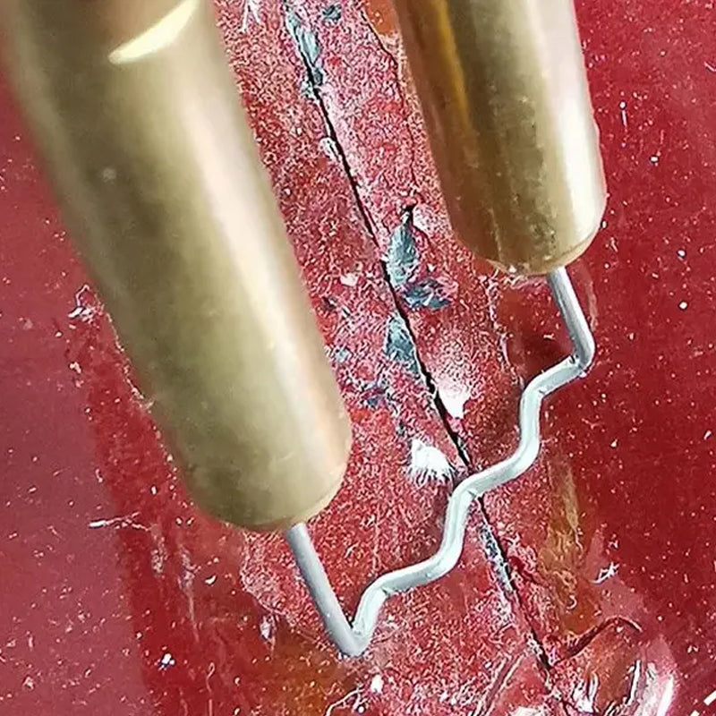- The welding staples can repair fractures, cracks, and tears in rigid or flexible thermoplastic parts. It is suitable for the repair and reinforcement of automobile bumpers, dashboards, lamp holders, plastic rings, and daily plastic products.