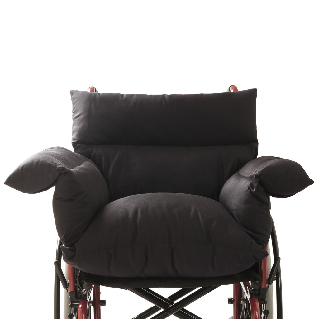 Enjoy maximum coverage and cushioning comfort with the Padded Wheelchair Cushion with Back and Arm Padding. This well-padded cushion provides warmth and comfort to the user, creating a cosy feel which may assist those feeling vulnerable or anxious to feel more snug and secure. At the risk of pressure areas, injury, or in need of extra comfort? Then this padded wheelchair cushion will do just that!