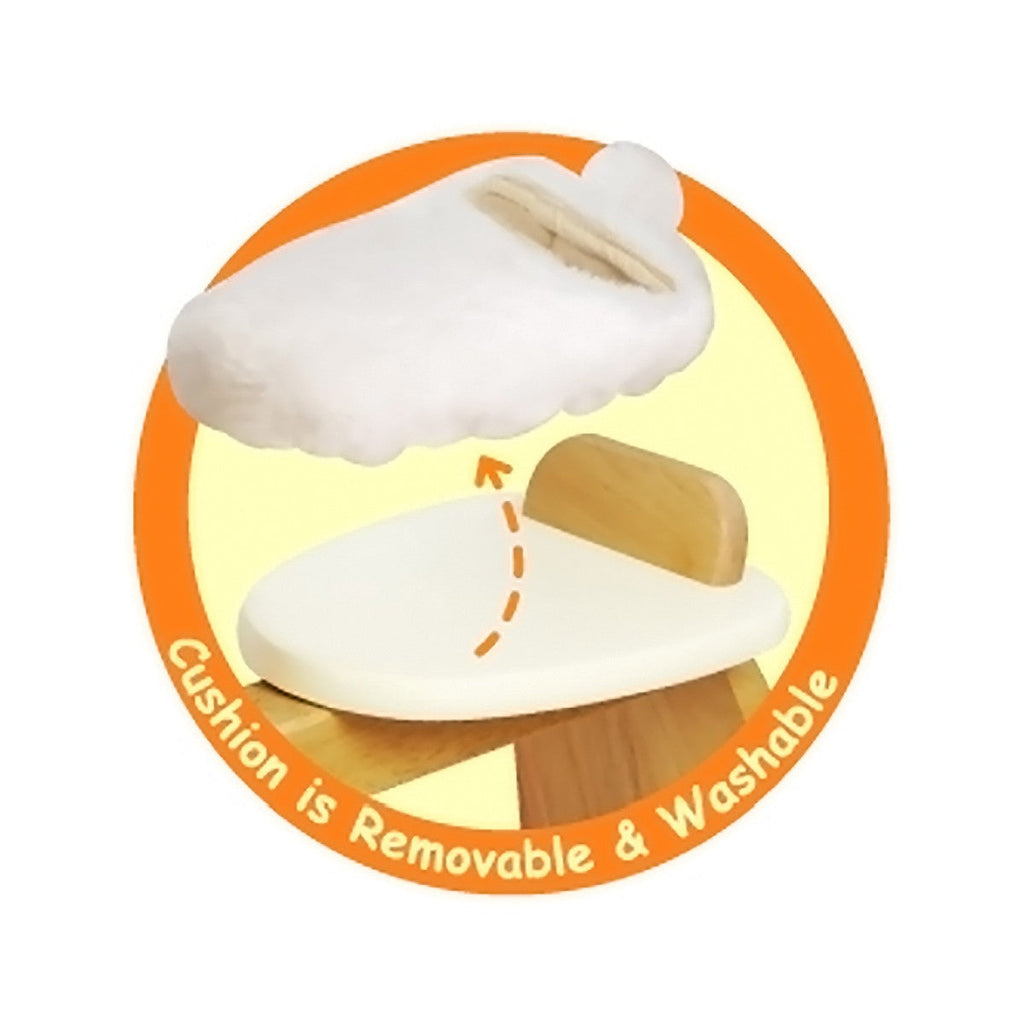 This colourful wooden ride-on bunny in a sturdy trike configuration features a steerable front wheel and a comfortable seat for little riders. The seat cushion is removable and washable, ensuring a clean and cozy experience. The ride-on includes soft fabric ears, a fabric tail, and EVA rubber-trimmed wheels to protect floors from damage. Made from organic rubber wood with a composite timber seat, this bunny ride-on is finished with non-toxic, child-safe paints and lacquers. Adult assembly is required, and the seat cushion can be washed with a cold wash on a delicate cycle, then air-dried.