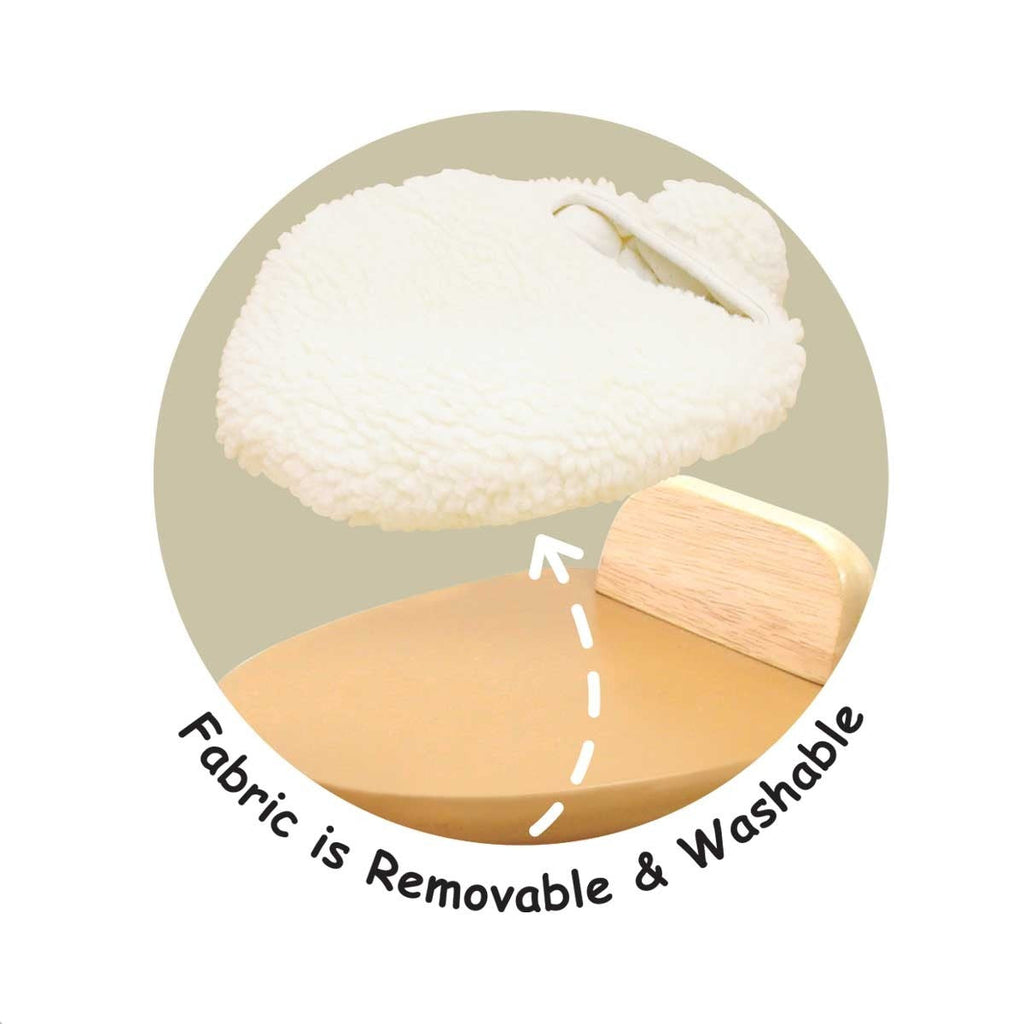 Let your child embark on an exciting adventure with this adorable ride-on sheep in a sturdy wooden trike configuration! Featuring a steerable front wheel and a comfortable seat, this ride-on toy is perfect for young riders to develop balance and coordination. The seat cushion is removable and washable for easy cleaning. Soft fabric ears, a fabric tail, and EVA rubber-trimmed wheels make this ride-on even more delightful for little ones. The toy is made from organic rubber wood and finished with non-toxic, child-safe paints and lacquers, ensuring it is both fun and safe for play.
