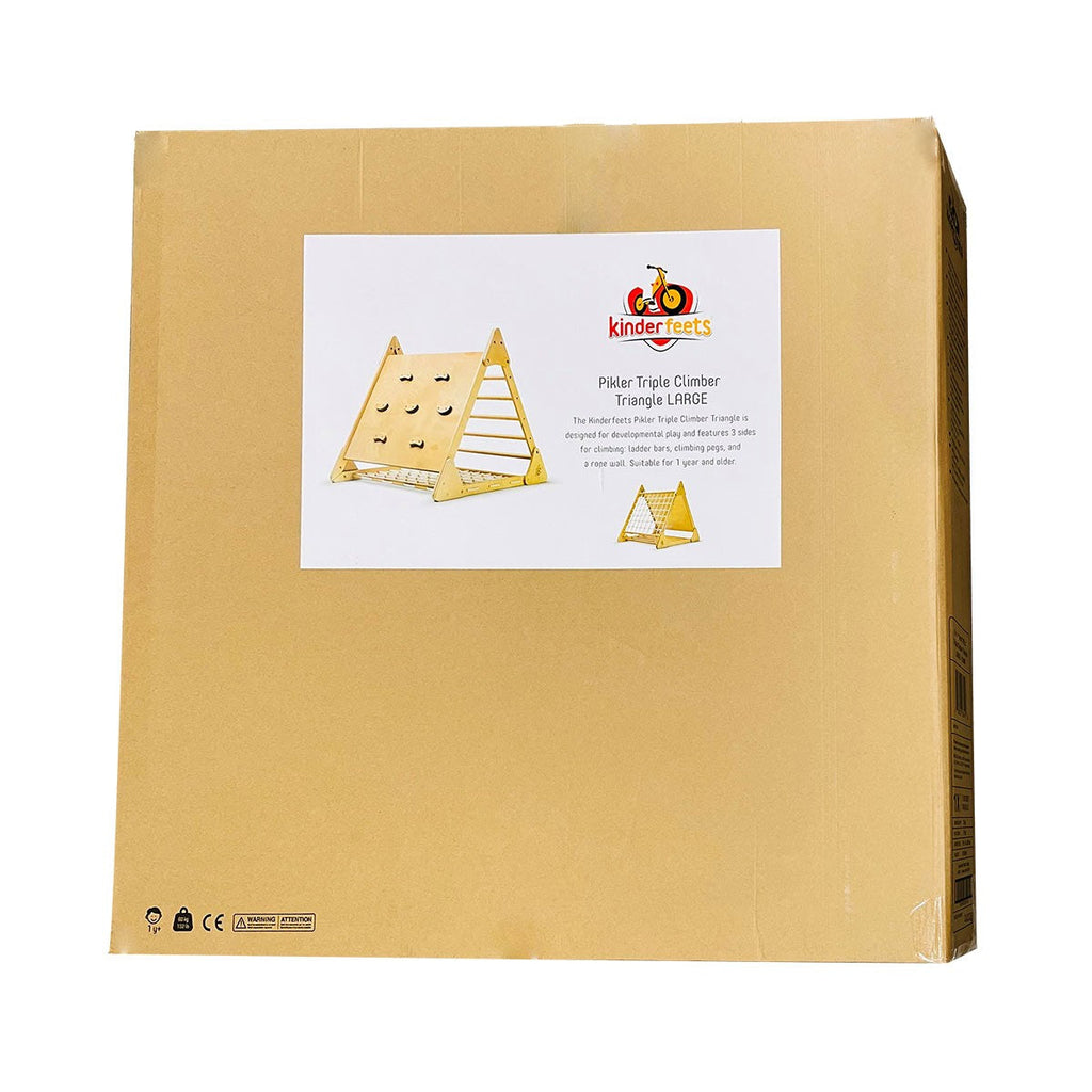 - The Kinderfeets Pikler Triple Climber Triangle is made from responsibly sourced birch plywood, beech wood and cotton rope. Adult assembly required.