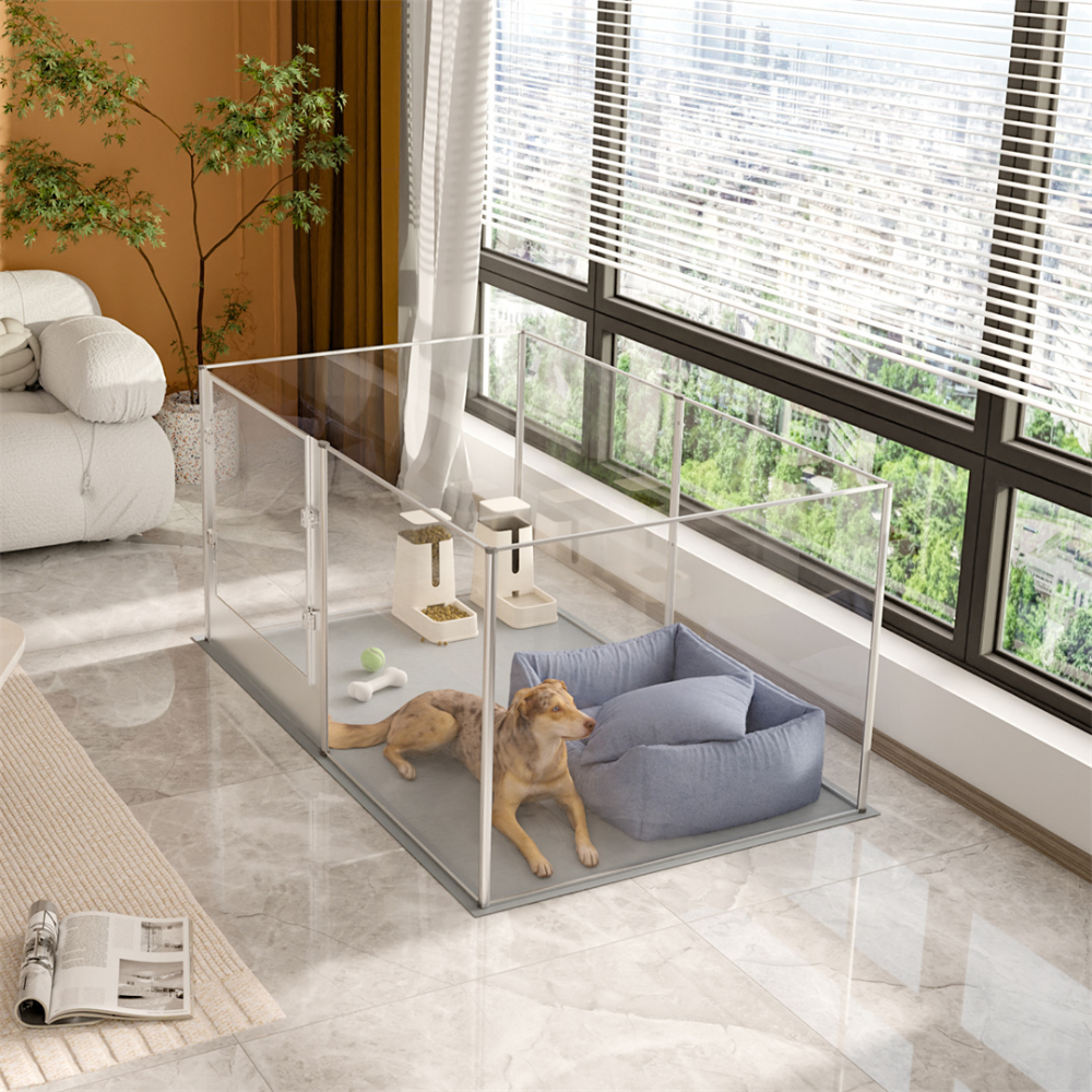 - Made with innovative materials and design to provide a modern and sturdy pet playpen. The use of high-toughness and impact resistant acrylic panels prevents climbing and keeps small animals safe. The playpen is designed with a scientific height of 15.74 inches, making it higher than other models in the market to ensure pets cannot jump over it. The crystal-clear acrylic panels allow for a 360° view, allowing you to interact and observe your pets.