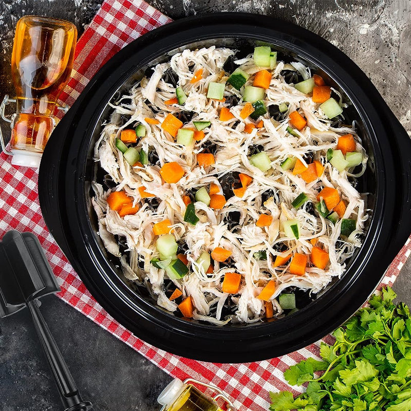 - This meat cutter has a transparent design and comes with a non-slip base so you can rotate it back and forth to achieve the perfect size. It also has a sealed design, so the juices will stay and be distributed equally which prevents the meat from drying out.