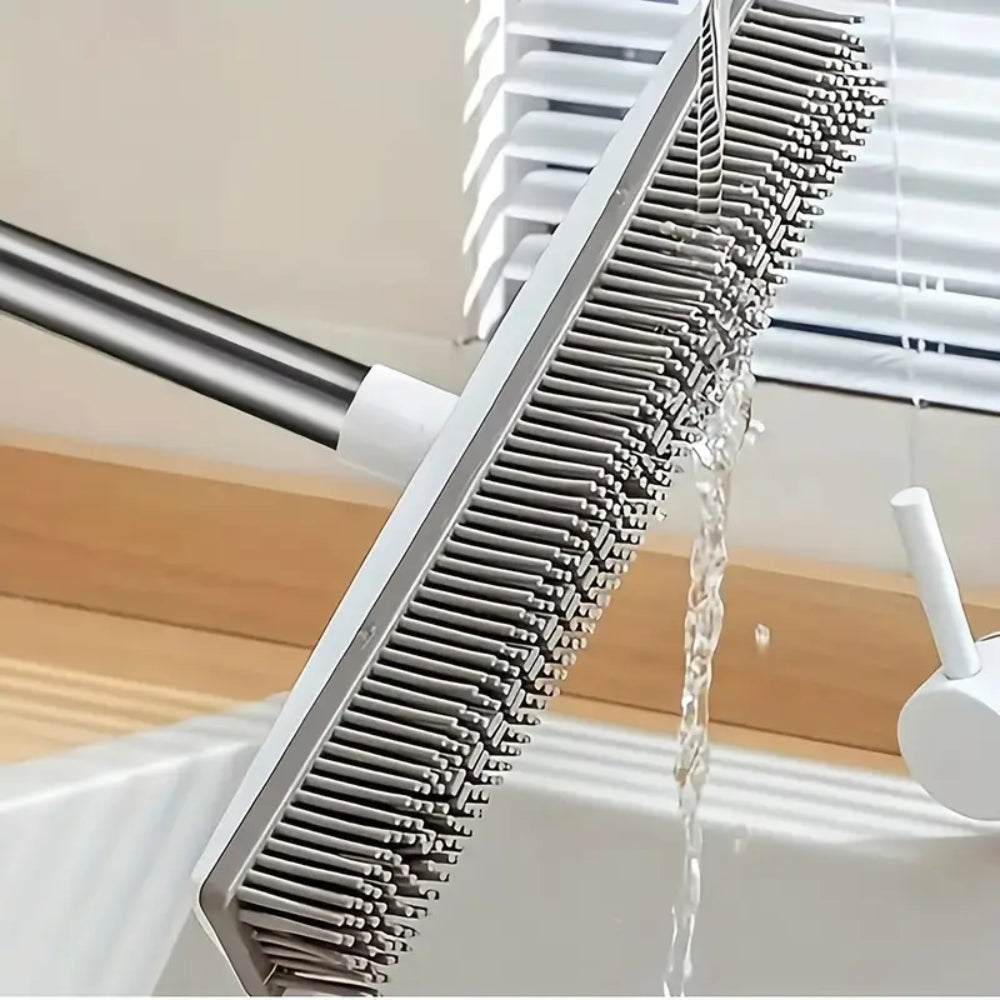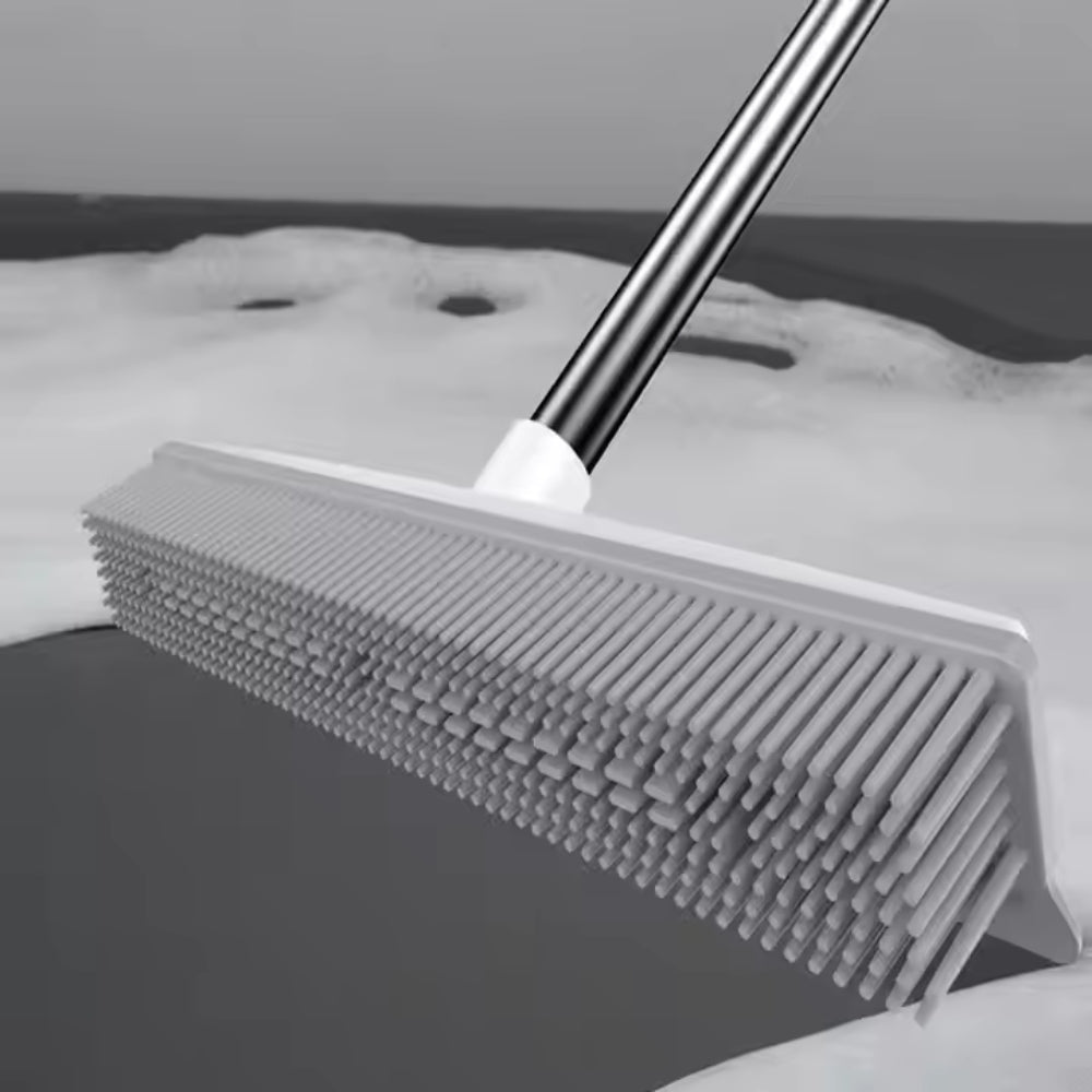 - The Rubber Broom Carpet Rake is the perfect solution for effortless cleaning across a variety of surfaces. Designed with durable rubber bristles, this broom effectively attracts and removes pet hair, dirt, and dust from carpets, tiles, hardwood floors, and more. Whether you're dealing with everyday mess or stubborn pet hair, the rubber broom makes cleaning quicker and more efficient than traditional brooms.