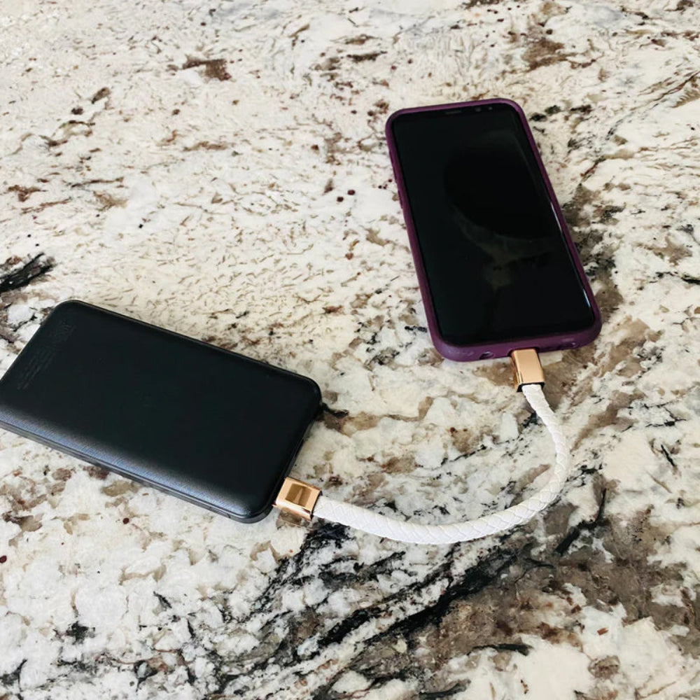 - This charging cable has a simple and modern design that can be worn as a bracelet. You can wear it on your wrist, or you can attach it to your purse, keychain, backpack, briefcase, or whatever you may be carrying with you.