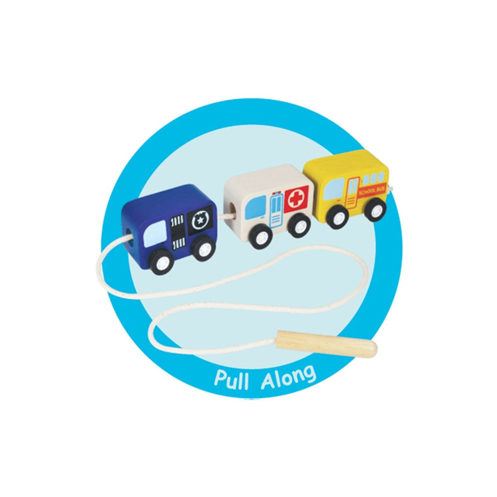 This engaging wooden stacking toy is perfect for toddlers, offering hours of fun and learning. It features four wheeled vehicles, along with scenery blocks and shapes that can be stacked or used independently for creative play. Children can build their own miniature landscape with buildings, trees, and road signs, and practice sorting, counting, and lacing activities. Ideal for fostering hand-eye coordination, fine motor skills, and imaginative play, this toy is made from organic rubber wood and finished with non-toxic, child-safe paints.