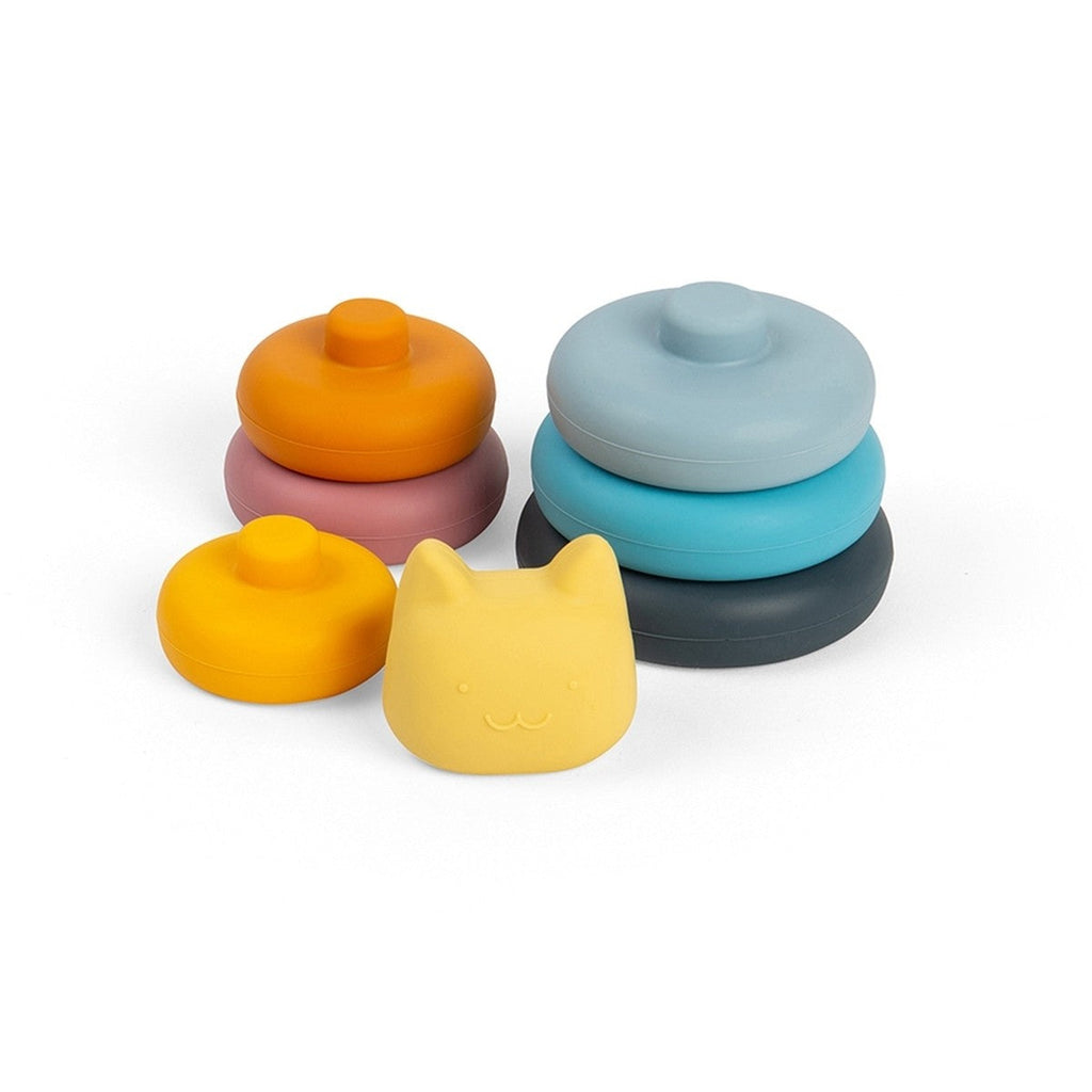 - The Silicone Stacking Cat is a fun and engaging stacking toy designed to support sensory development and fine motor skills in babies and toddlers. This set includes six soft silicone stacking rings and a cute cat face that slots on top of the tower. The smooth silicone texture is gentle on little hands, making it perfect for early learning and tactile exploration.