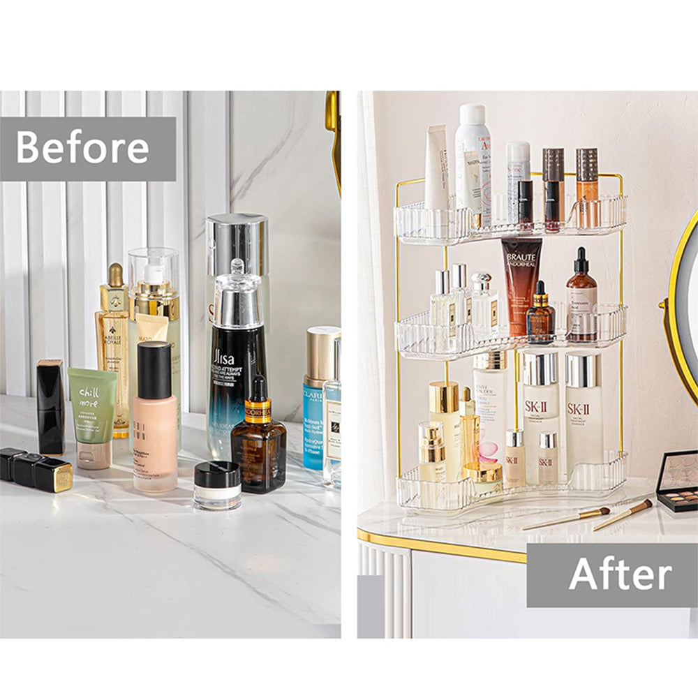 - Versatile 3-Tier Design: The size and 90-degree design of this countertop shelf allow for a variety of uses. It's not limited to the bathroom and can be placed in the kitchen, bedroom, or dresser for added organization and style.