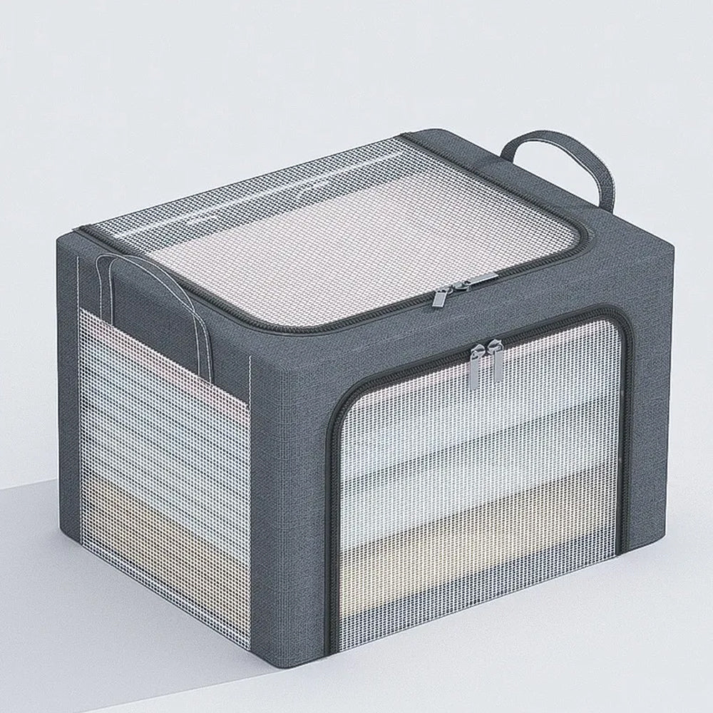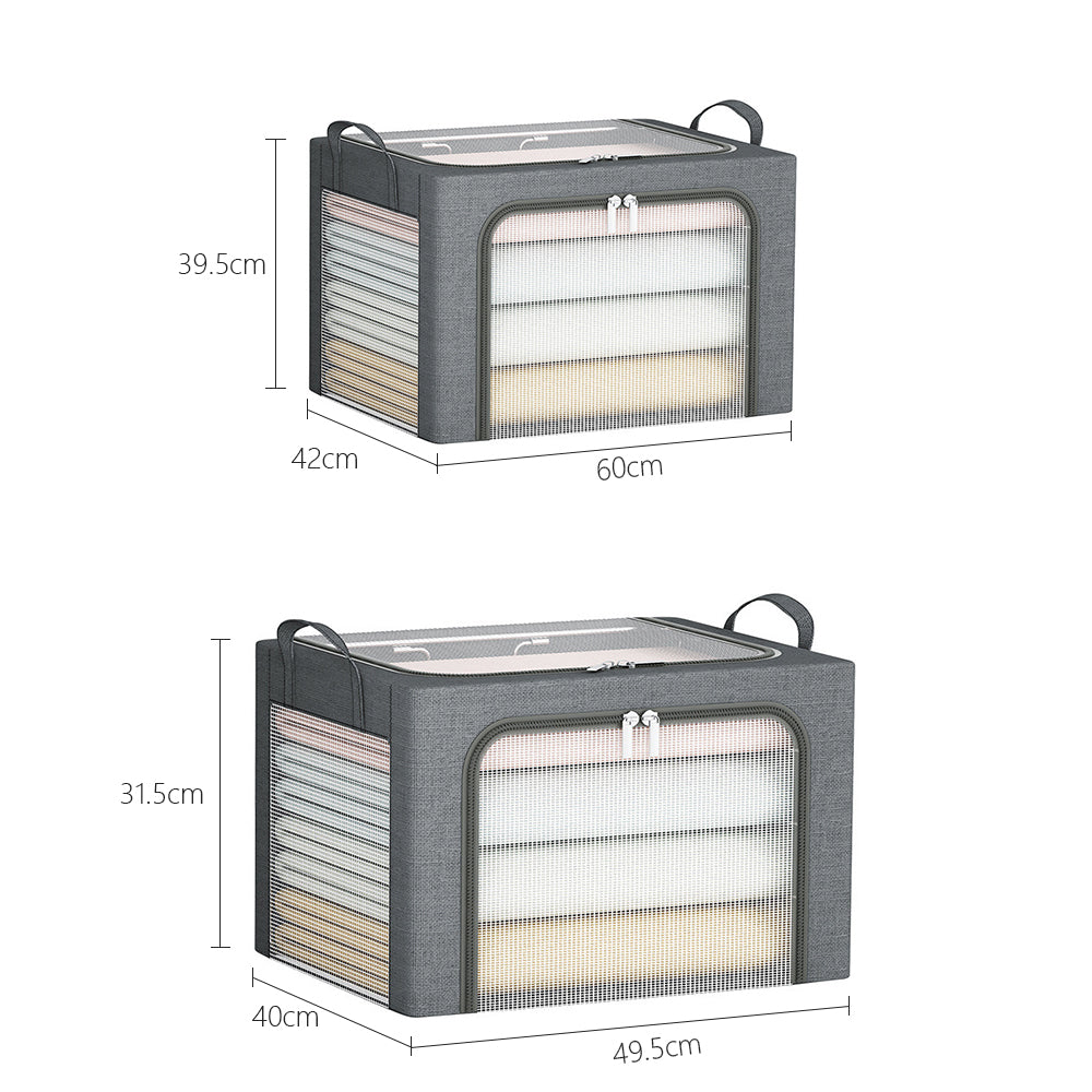 Efficiently store seasonal clothes and bedding with this durable organizer featuring steel frames, clear windows for easy identification, and convenient stacking. The ample storage space, handles, dual zipper design, and foldable feature enhance organization and accessibility.