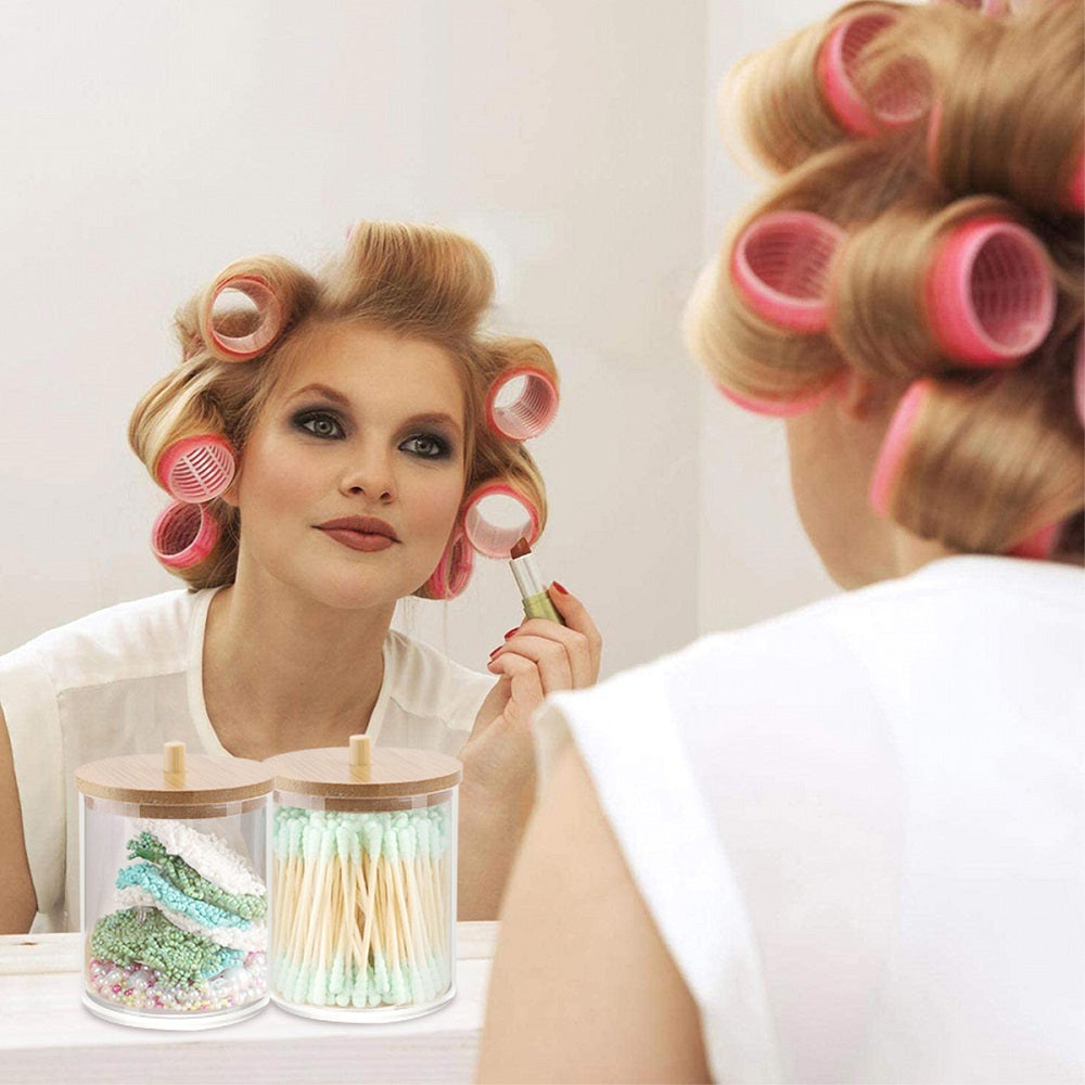 - The package includes a transparent paper cup dispenser and a bamboo lid, with 6 different styles for you to choose from. The bamboo cover also serves as a dust-proof shield, protecting your cups and cotton pads from dust, as well as preventing any splashing water from entering the container.