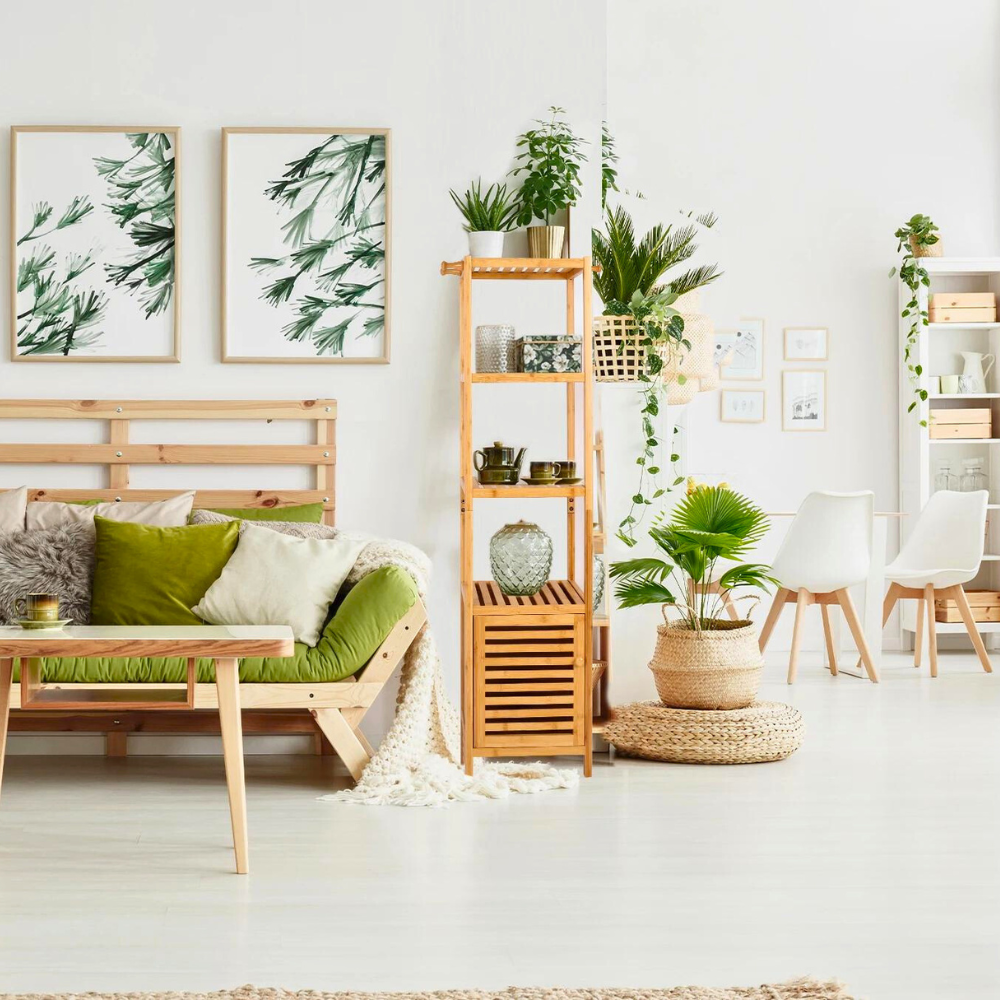 - This multi-functional storage shelf features a natural wood finish that adds a sleek and chic look, complementing any home design. Its large storage capacity makes it ideal for limited spaces in apartments. Crafted from renewable bamboo, the shelf offers high toughness and is resistant to wear and water. The hand-polished surface, treated with a clear lacquer, provides a smooth touch. Designed for use in the bathroom or kitchen, it is resistant to mold, ensuring long-lasting durability.
