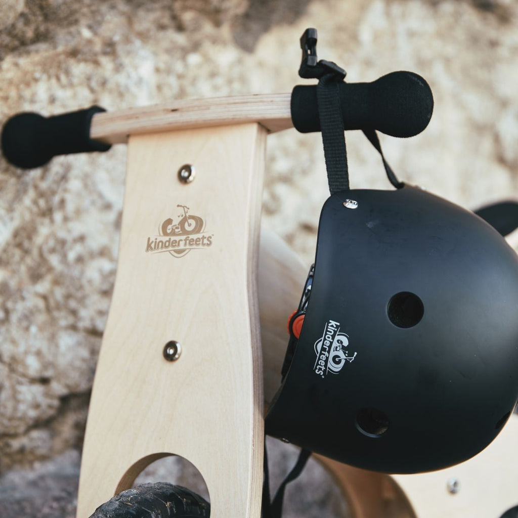 The Kinderfeets Toddler Bike Helmet is designed for children using balance bikes, scooters, skates, or skateboards. It offers an adjustable fit with a dial system and a padded chin strap for added comfort. Featuring a durable ABS outer shell and an EPS liner, this helmet ensures safety while riding. The helmet also includes two sets of Sweatsaver Fit Pads for added convenience and comfort, and multiple ventilation holes ensure optimal airflow during long rides.